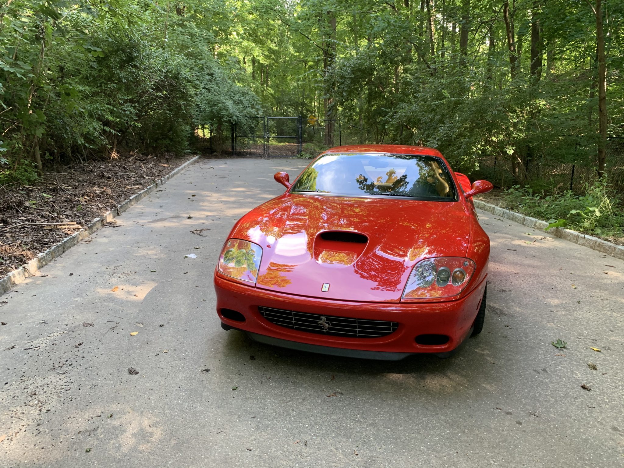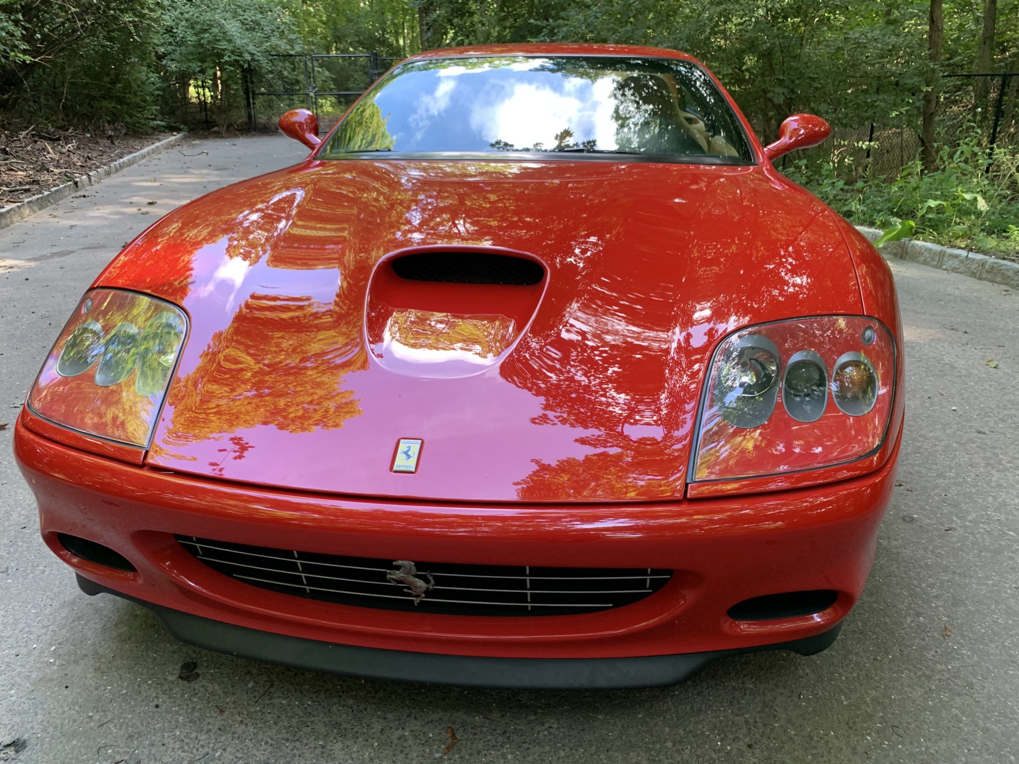 19″ two-piece wheels are wrapped in Pirelli P Zero tires measuring 255/35 up front and 305/30 out back. Braking is handled by cross-drilled and ventilated rotors paired with yellow calipers at all four corners, and this example is fitted with the Fiorano handling package consisting of a stiffer rear stabilizer bar, springs, and bushings as well as quicker steering ratio courtesy of a re-tuned power steering computer. Service in 2015 reportedly included replacing the shock absorber control unit and the Skyhook suspension control computer.