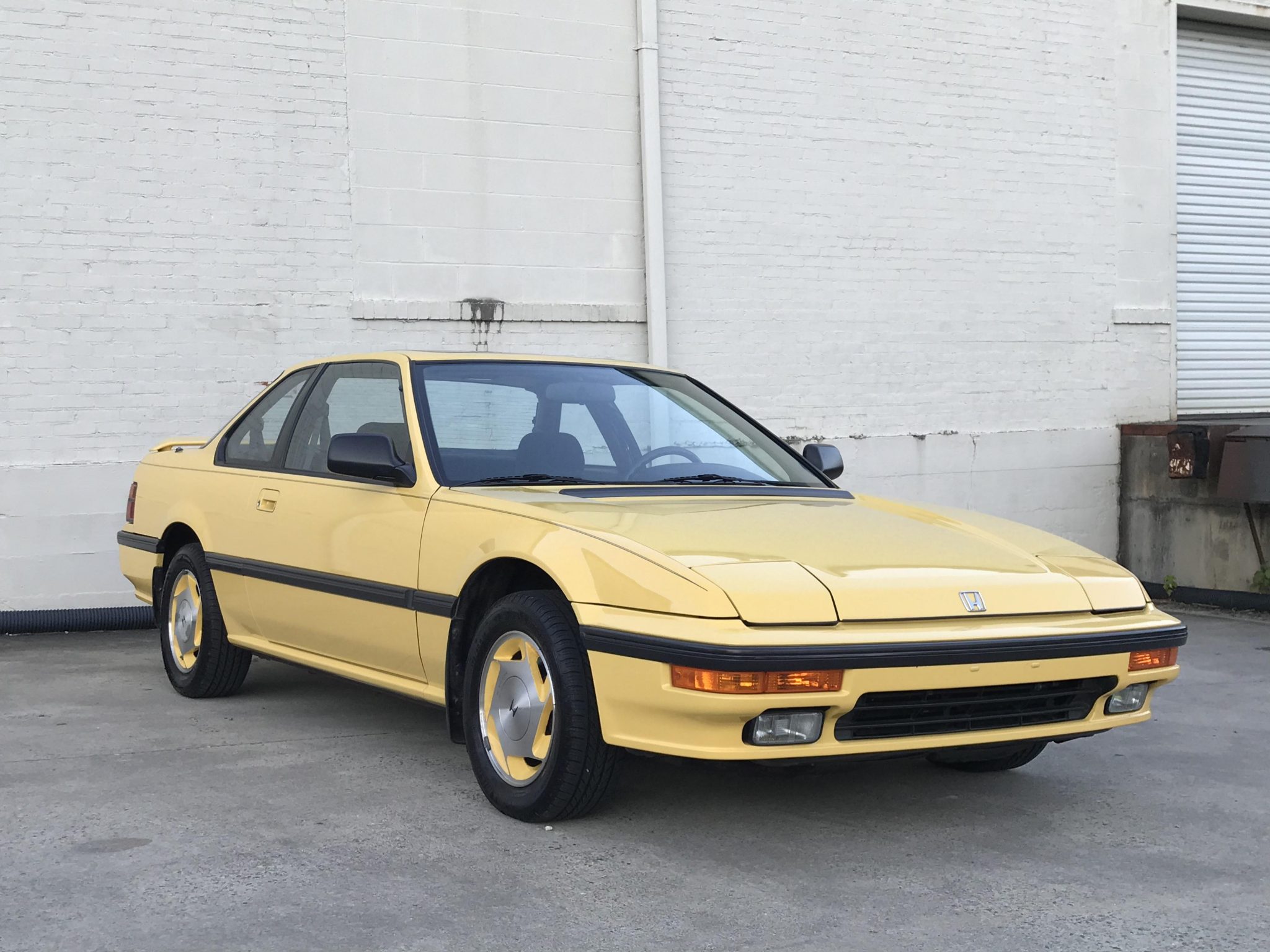 Six-spoke 14″ alloy wheels feature yellow insets and are wrapped in 195/60 Michelin Pilot Exalto A/S tires. The car is equipped with four-wheel disc brakes and independent suspension front and rear.