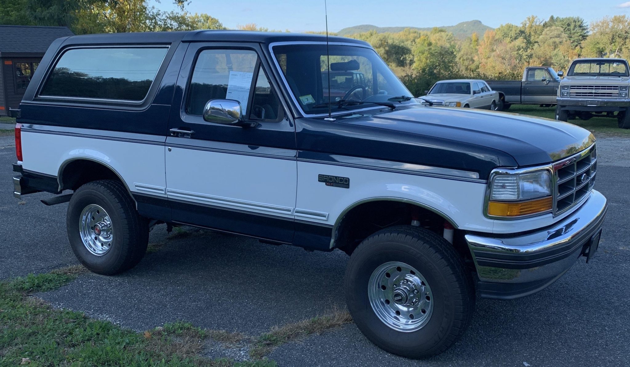 Factory 15” forged wheels are fitted with Cooper Discoverer H/T tires that measure 265/75. The front axle features Warn manually-locking hubs, and a 2” lift kit has been added. Work performed by the selling dealer reportedly includes replacement shocks, ball joints, radius arm bushings, brake rotors, calipers, front pads, and rear shoes.