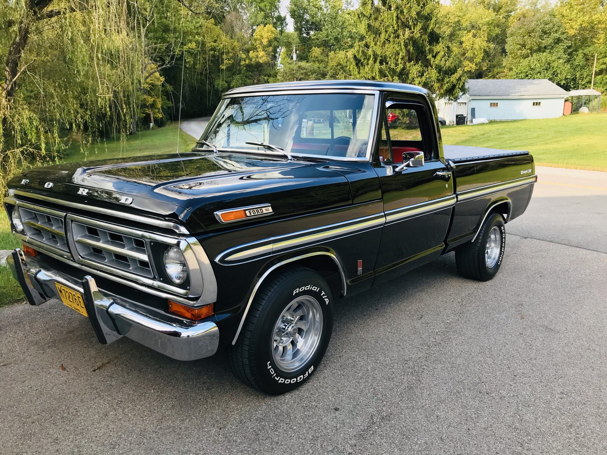 The 15″ wheels wear faux spinners and are wrapped in 235/70 BFGoodrich Radial T/A tires. The seller has installed front disc brakes, and other service during current ownership includes the replacement of rear brake components, the brake master cylinder, and the brake lines.