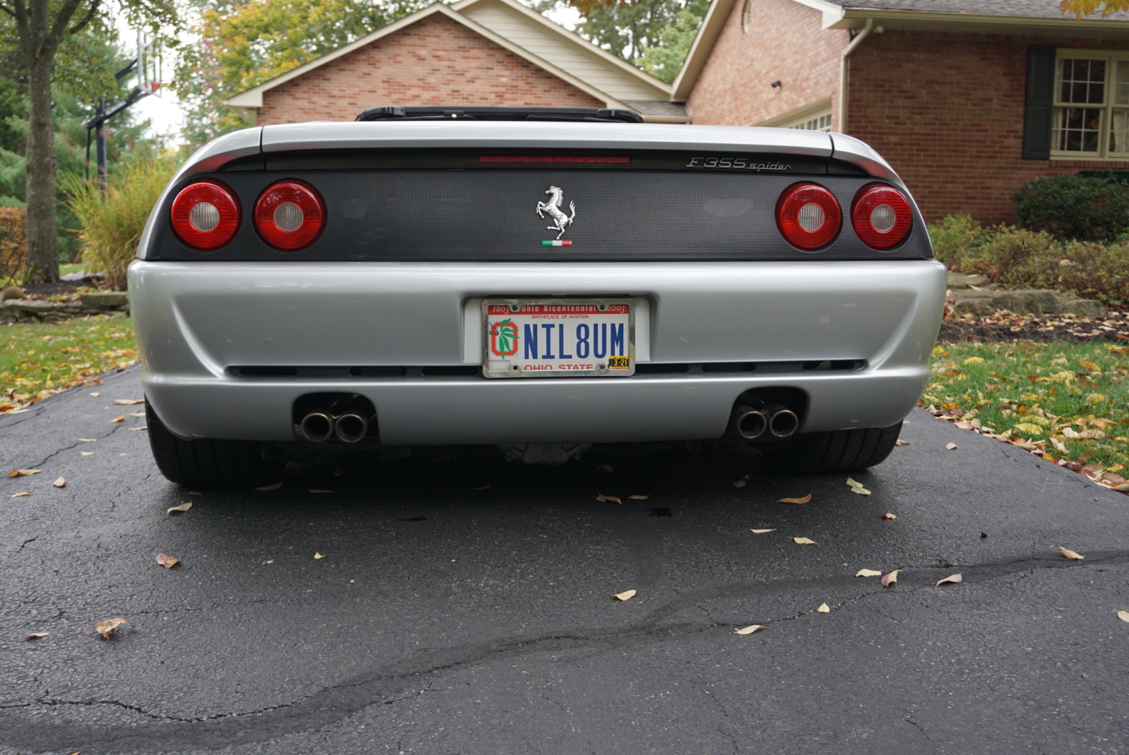 Factory 18″ five-spoke wheels are wrapped in Michelin Pilot Super Sport tires measuring 225/40 up front and 265/40 out back. Braking is handled by four-wheel ventilated discs with black calipers wearing white Ferrari script. The seller states that the yellow shock-absorber warning light on the dash remains illuminated since the right rear shock absorber and actuator were replaced in 2012.