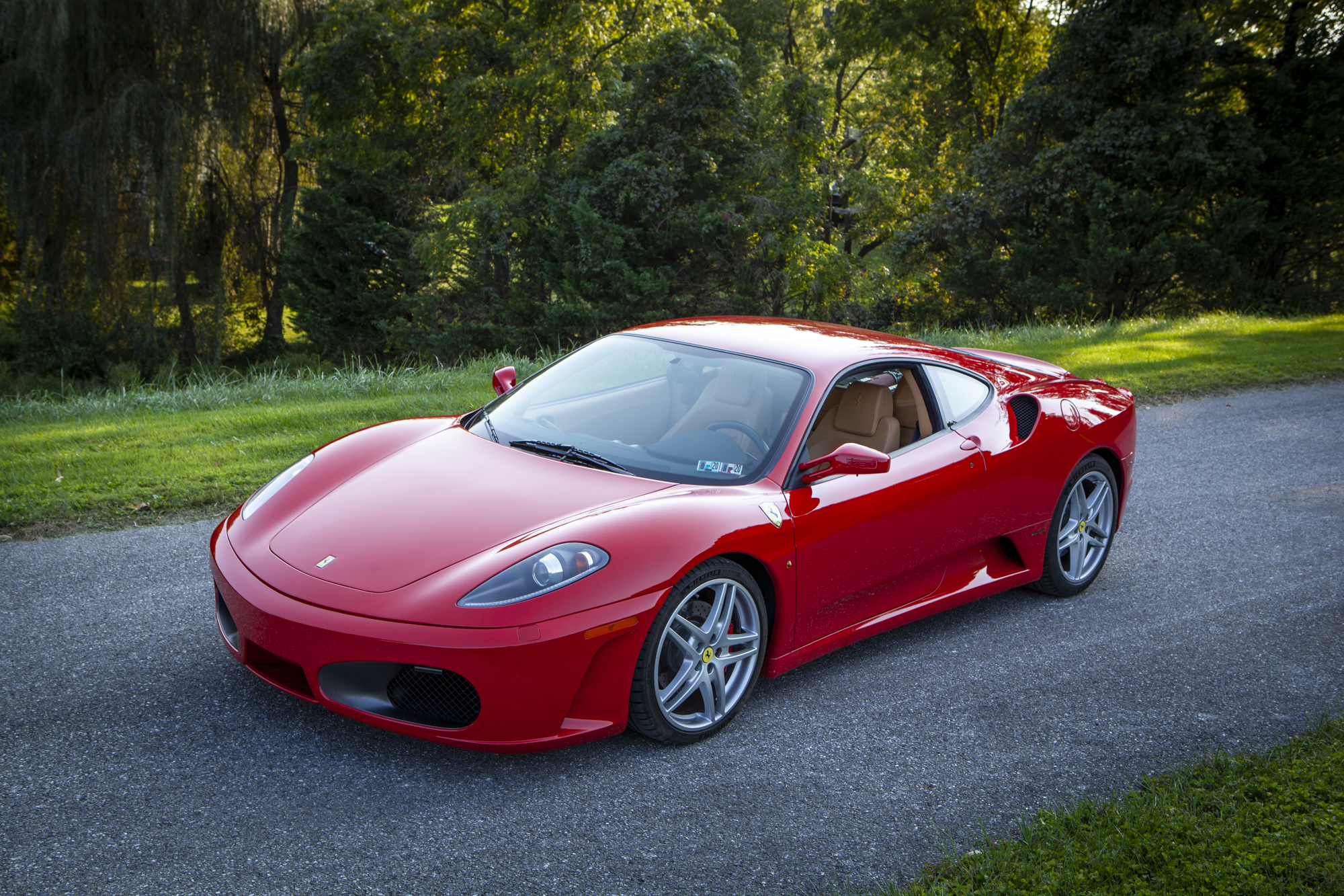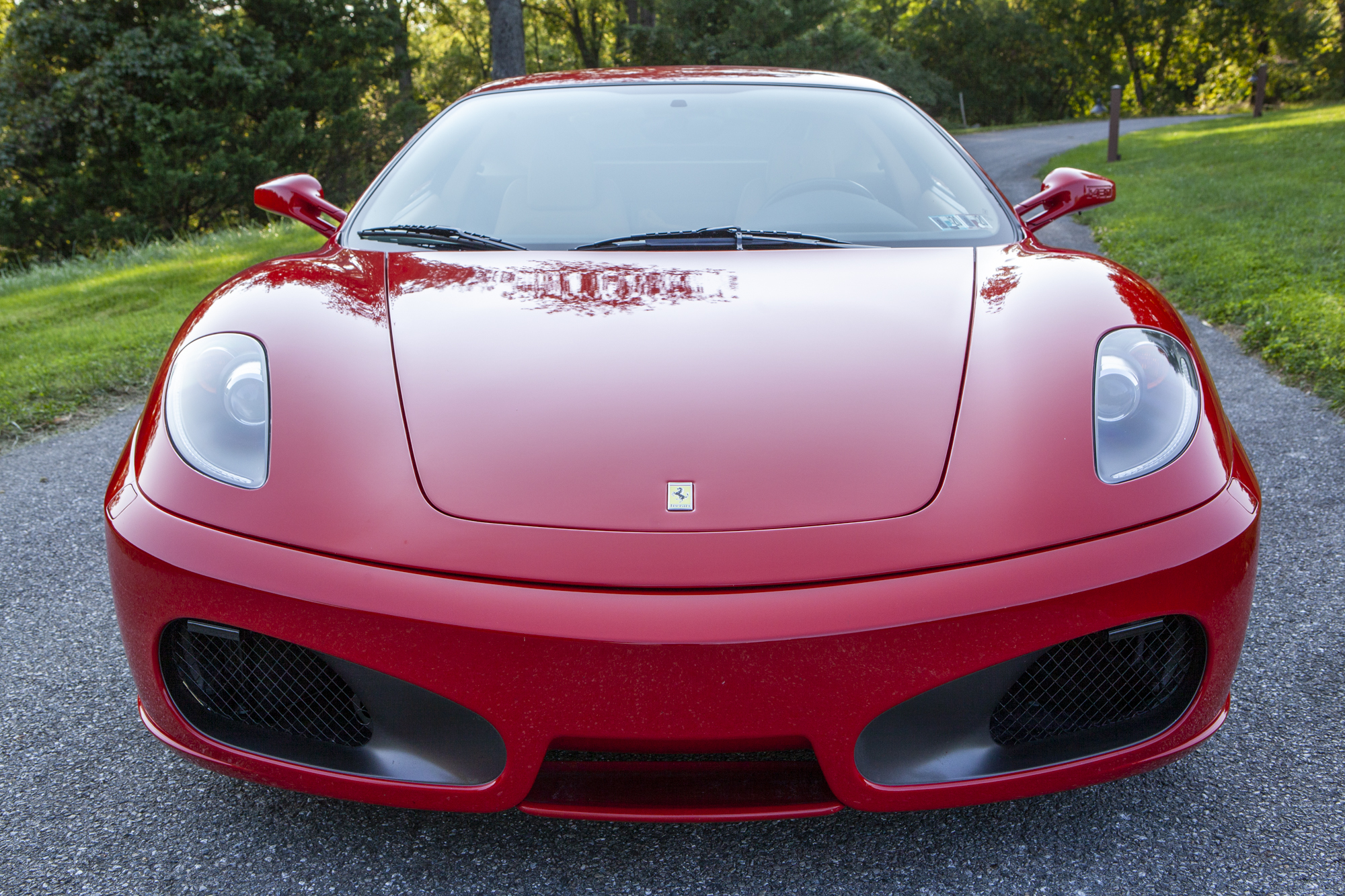This example is finished in Rosso Corsa, and a previous owner added clear protective film to the front bumper, fenders, hood, and side mirrors. The seller notes that the film exhibits areas of wear and discoloration, while two paint chips are apparent on the roof and rear deck. A crack in the rear diffuser was repaired in February 2020.