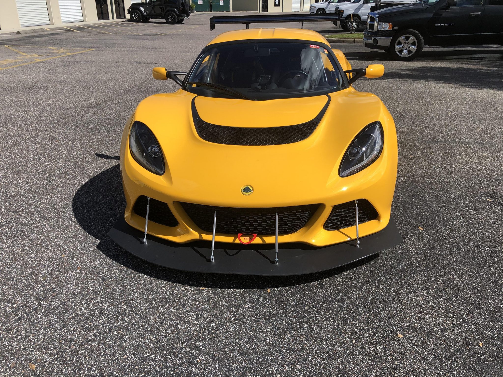 The staggered-diameter Lotus Racing five-spoke wheels are mounted with Pirelli P Zero DH slicks. Braking is handled by AP Racing calipers along with two-piece rotors, and aftermarket brake pads were installed by a previous owner. The suspension is fully independent and features double-wishbone control arms at all four corners with Nitron double-adjustable remote-reservoir coilover assemblies, and an adjustable Blackwatch Racing Ultralite SCCA/SS-specification front sway bar was installed by the seller.