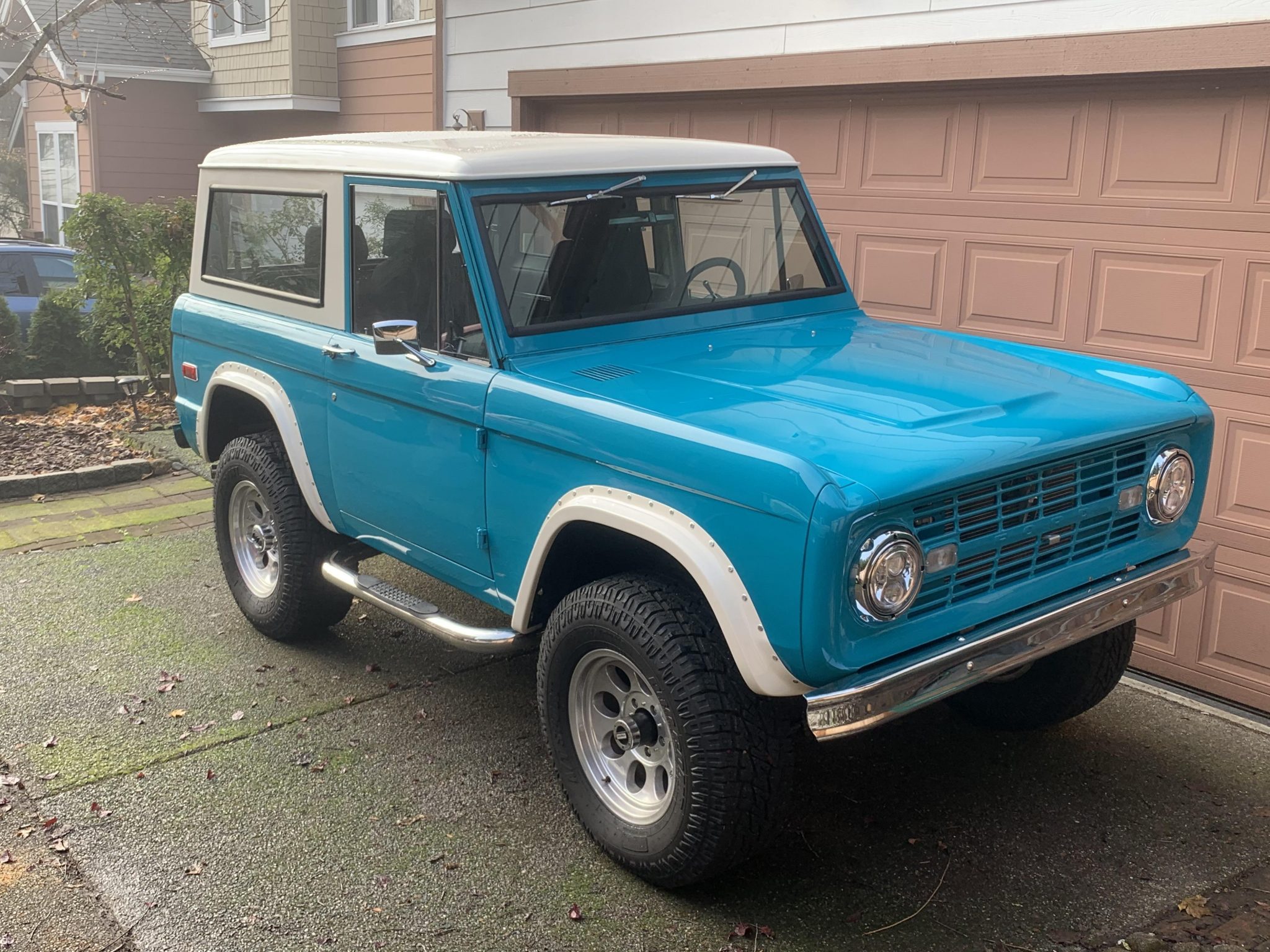 Polished 17″ Mickey Thompson wheels are wrapped in 285/70 Pro Comp A/T Sport tires. The front axle is equipped with Warn manually locking hubs, and the suspension is said to include replacement shocks, bushings, ball joints, and wheel bearings. Four-wheel disc brakes are installed including replacement braided stainless steel lines, and the steering system has been upgraded with power assist and a modern-style steering damper.