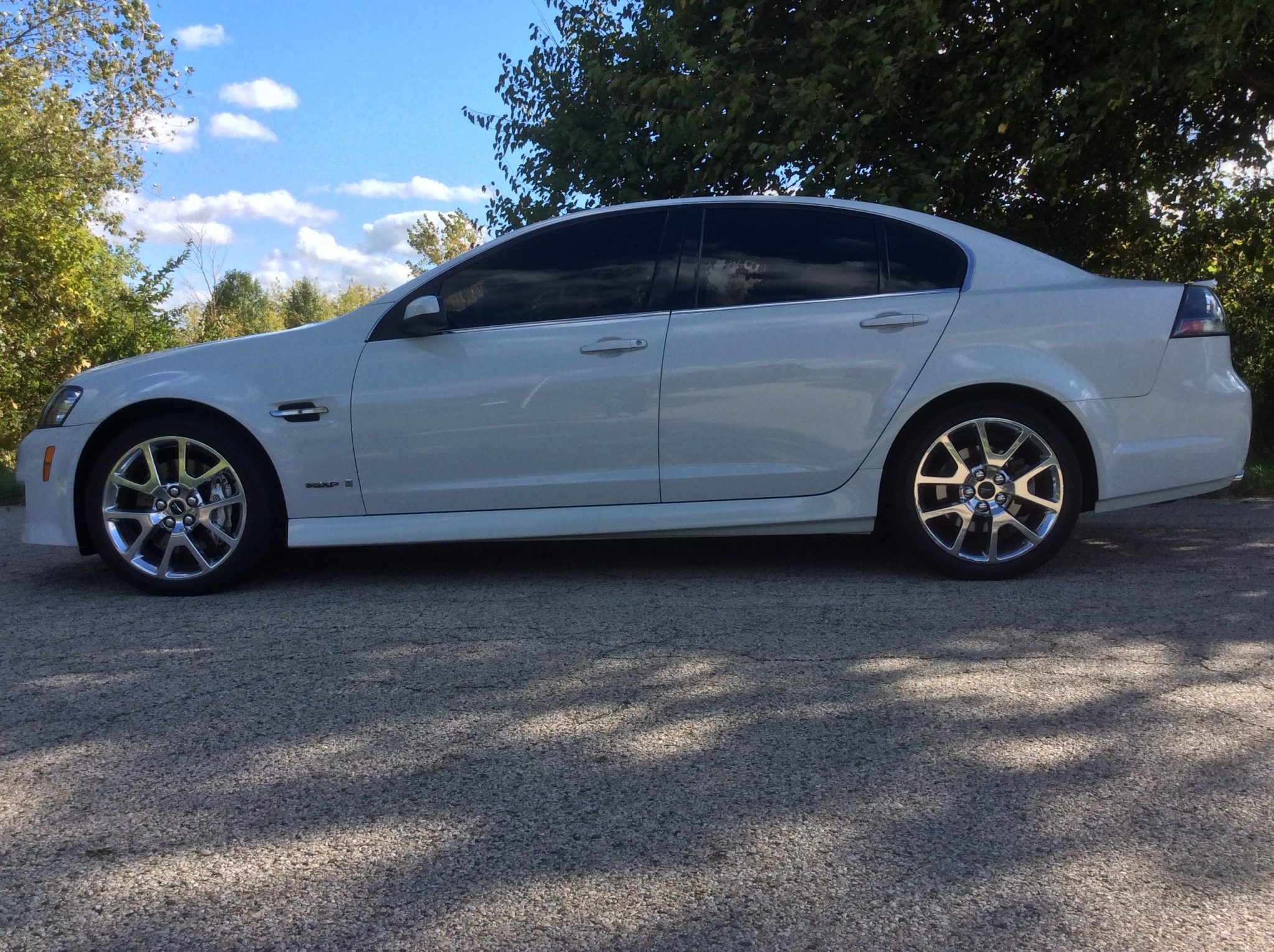 19″ polished wheels are also unique to the GXP and are wrapped in Uniroyal Tiger Paw tires that were mounted in 2014, and the seller notes that curb marks are visible on the wheels. The FE3 suspension package added stiffer springs, re-valved dampers, and a thicker rear sway bar. Braking is handled by Brembo calipers up front with slotted and drilled rotors.
