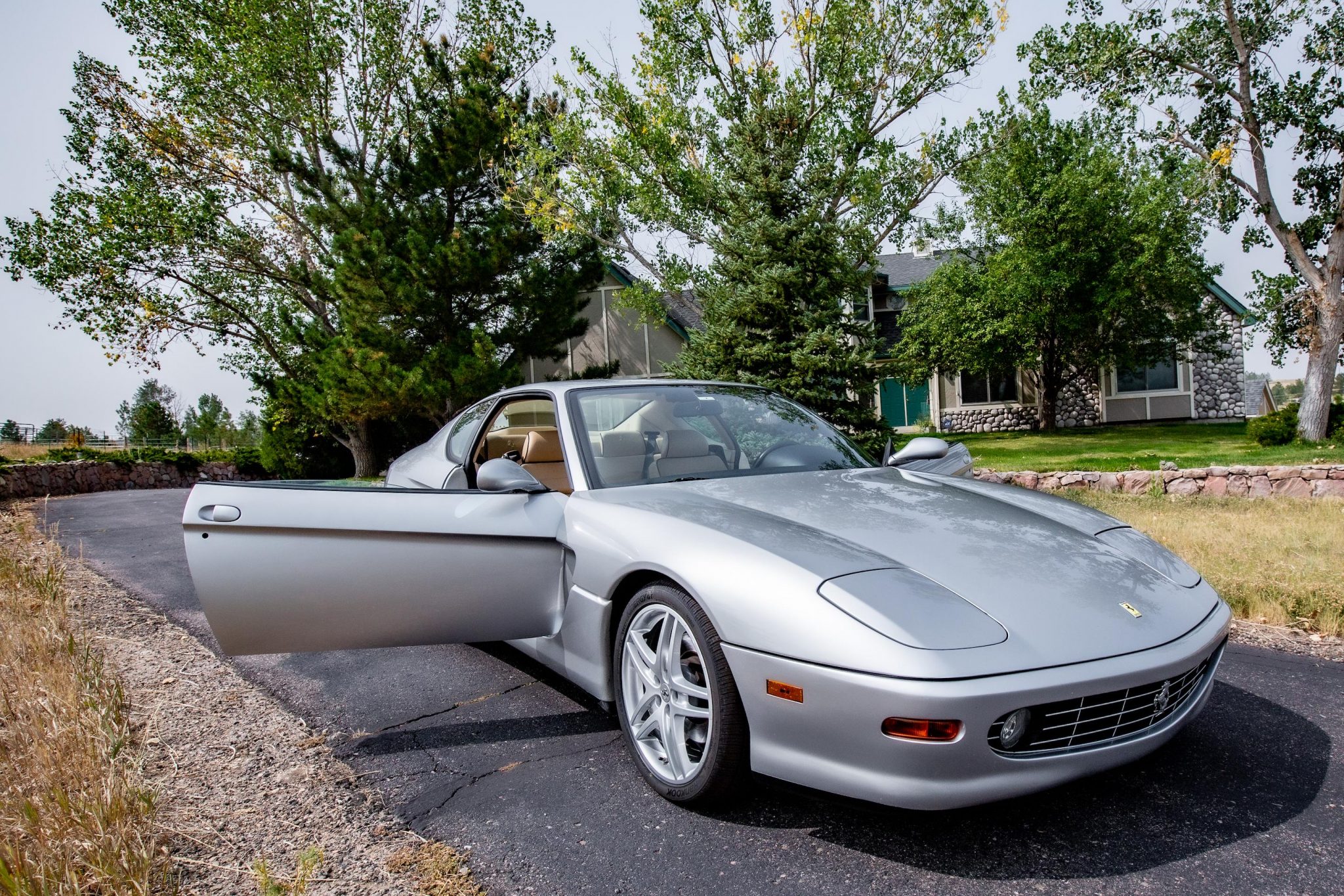 The 19″ dual-spoke F430 wheels are mounted with Hankook Kinergy GT front and Pirelli P Zero Rosso rear tires. Braking is handled by discs equipped with gloss-black calipers with white Ferrari scripts at all four corners. New shocks were installed during previous ownership in 2016.