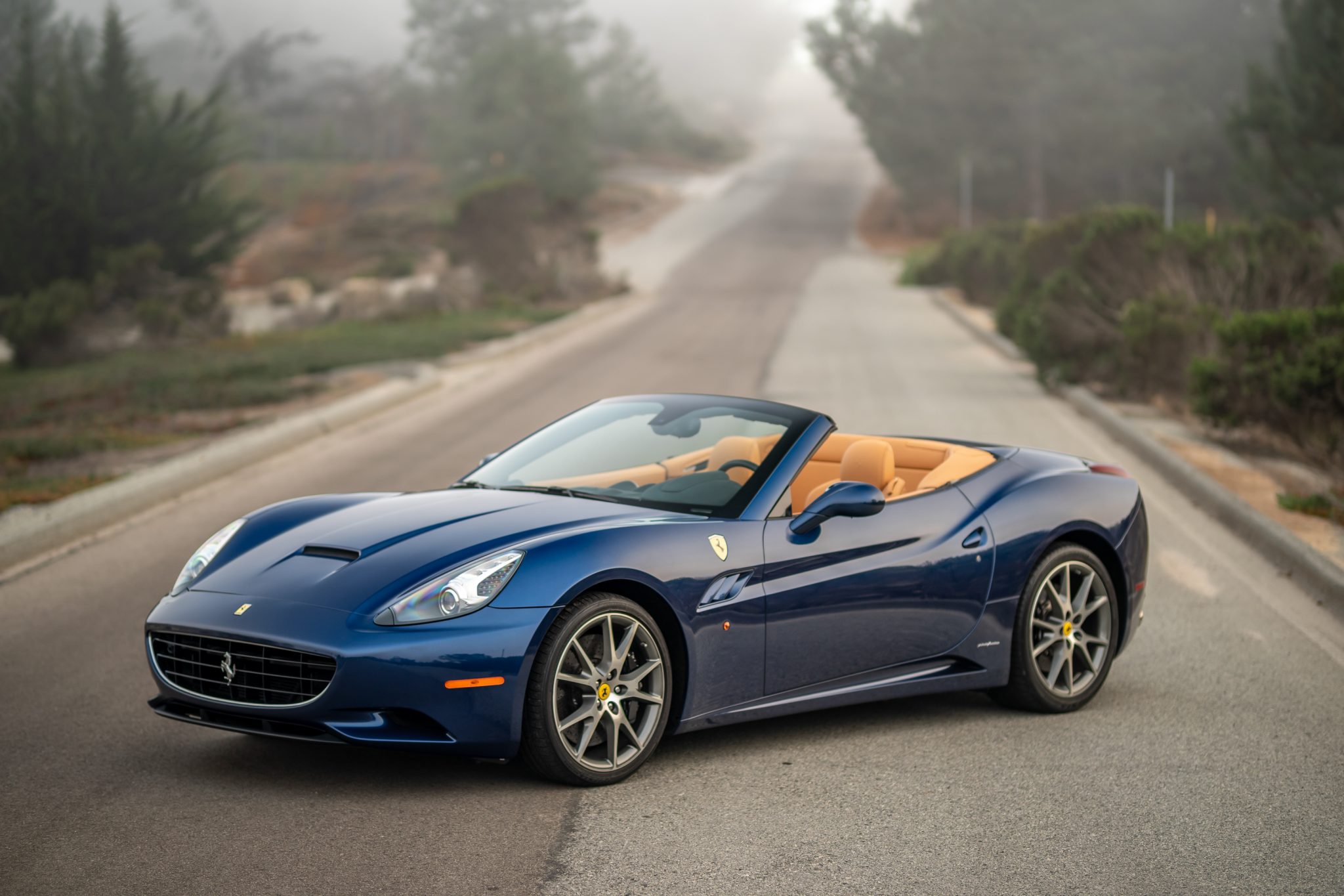 Factory 20″ wheels are fitted with yellow Cavallino center caps, and the seller reports that the pictured original Bridgestone tires were replaced since the car was photographed. The optional carbon-composite brake system features black-finished brake calipers, and the California was the first Ferrari road car to use a rear multi-link suspension system.