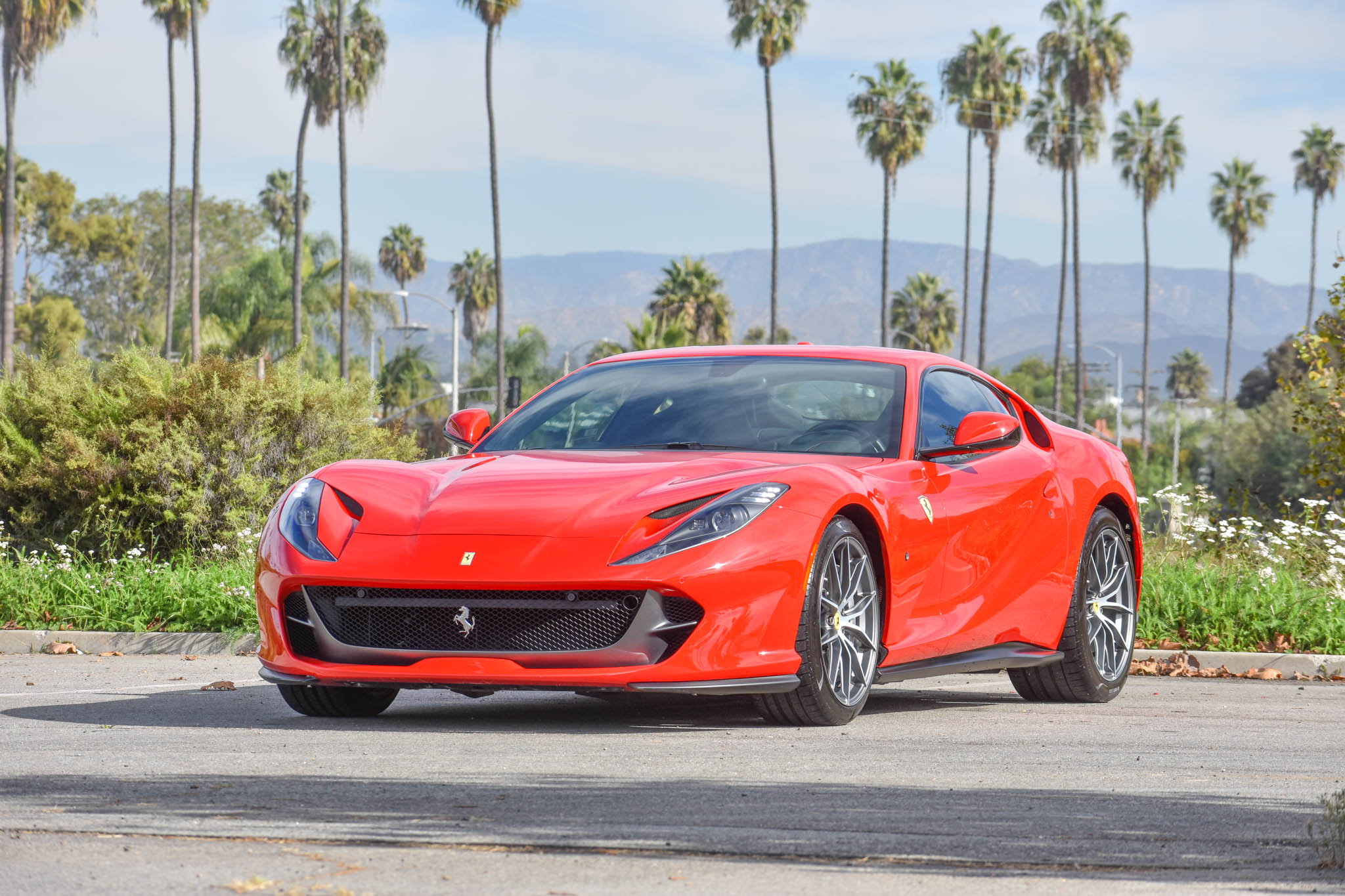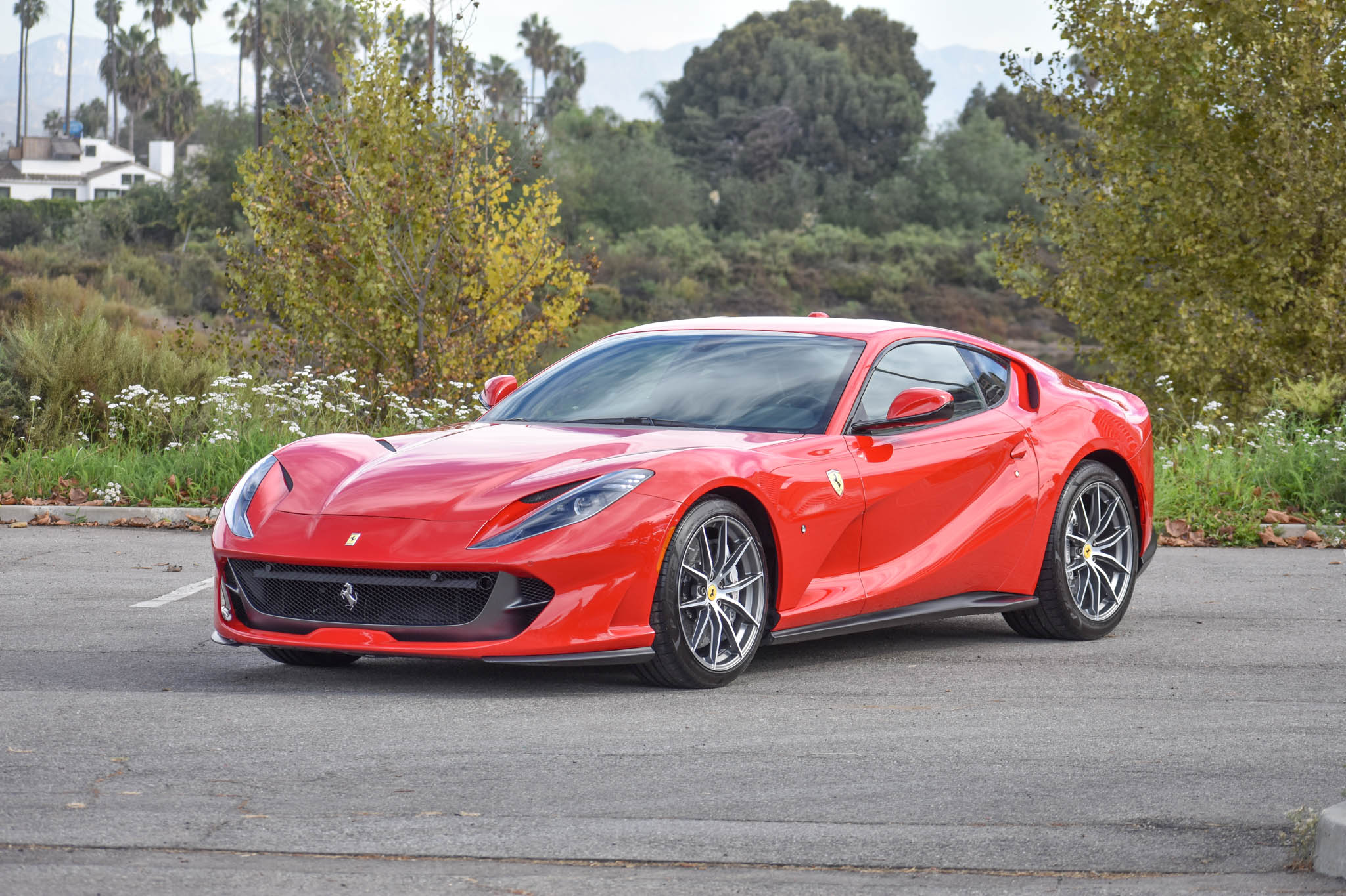 20″ forged diamond-cut racing wheels are mounted with Pirelli P Zero tires measuring 275/35 up front and 315/35 out back. Braking is handled by Brembo Extreme Design brakes with carbon-ceramic discs and silver-finished Ferrari-branded calipers. The 812 Superfast is equipped with rear-wheel steering as standard, and this example is fitted with an optional suspension-lift system.
