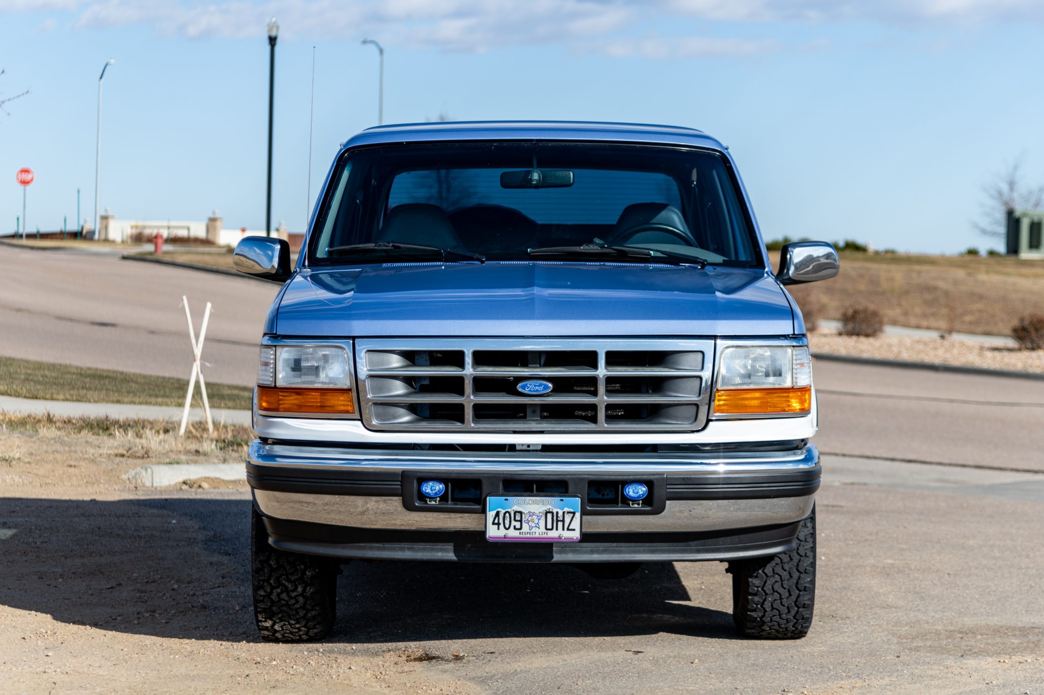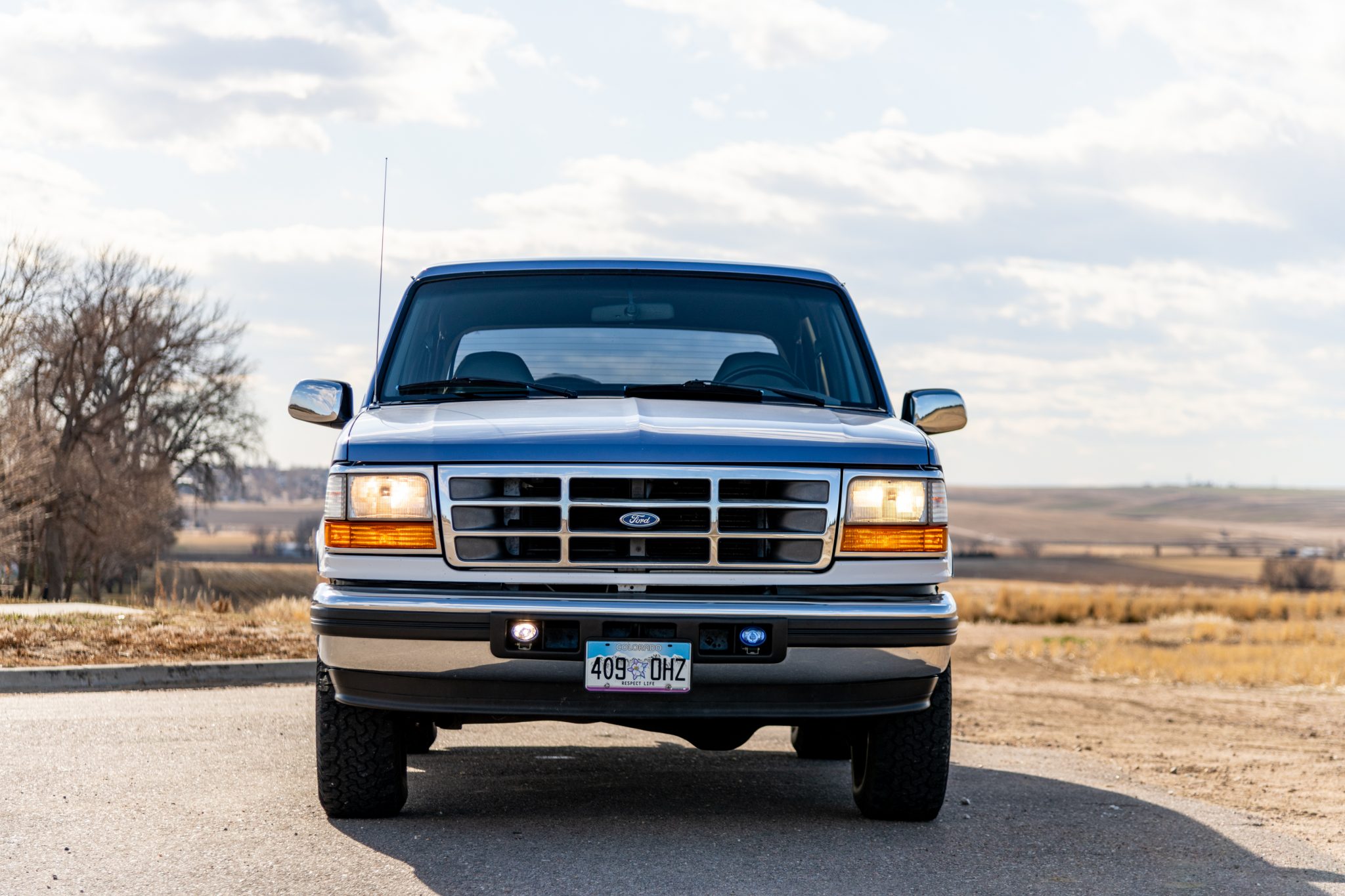 Chrome 15″ wheels wear 31″x10.5″ BFGoodrich All-Terrain T/A KO tires. A spare protected by a cover is mounted to the swing-out rear carrier. Braking is handled by front discs and rear drums, and the truck is equipped with automatic-locking front hubs, front and rear sway bars, and Rancho shock absorbers. The seller reportedly serviced the brakes and replaced bushings.