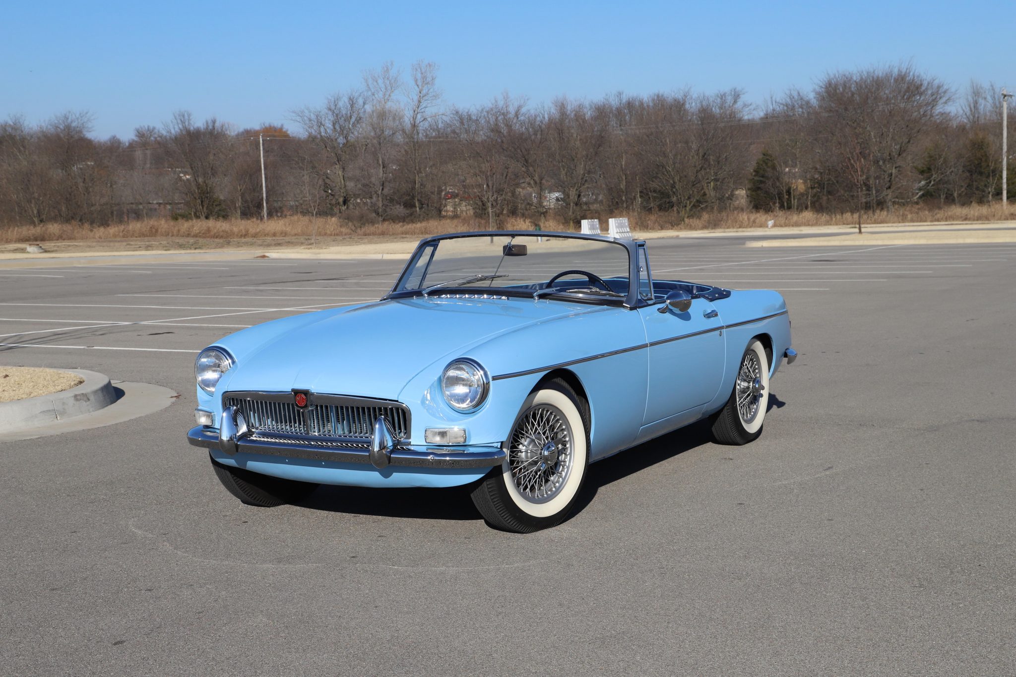 Replacement 14″ wire wheels with two-eared knock-off spinners are wrapped in wide-whitewall bias-ply tires. A vibration at speeds above 70 mph is noted by the seller.