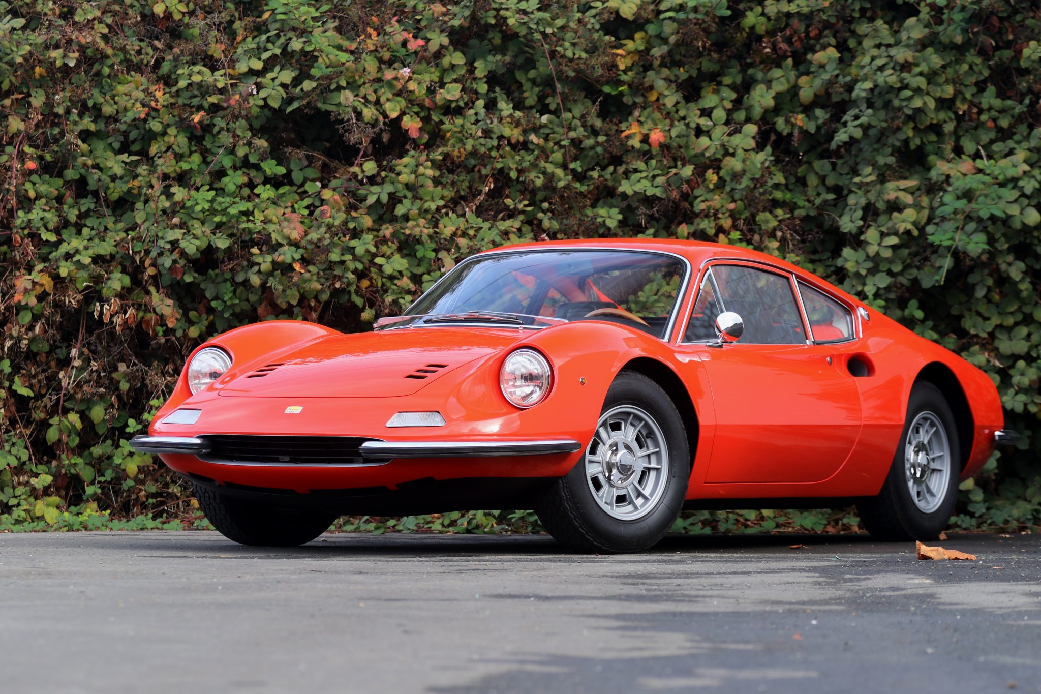During its restoration, this car was disassembled and prepped by Boston Sportscar Company before being sent to Rex Nguyen Restorations in California for further detail work. The body was placed on rotisserie and stripped to bare metal so that repairs could be carried out on the aluminum panels and steel underpinnings. It was then primed and refinished in its original shade of Rosso Dino using single stage PPG paint along with DU5 hardener and PPG reducer. The seller notes that the driver’s side of the engine lid sits proud of the adjacent body panel, and that wiper marks can be seen on the windshield.