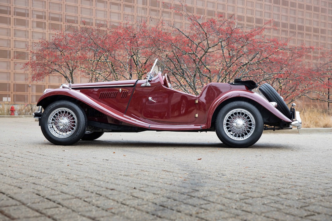 Chrome 15” wire wheels secured with two-eared knock-off nuts wear 165/80 Kumho tires, including the rear-mounted spare. A knock-off hammer and wood wrench are included in the sale.