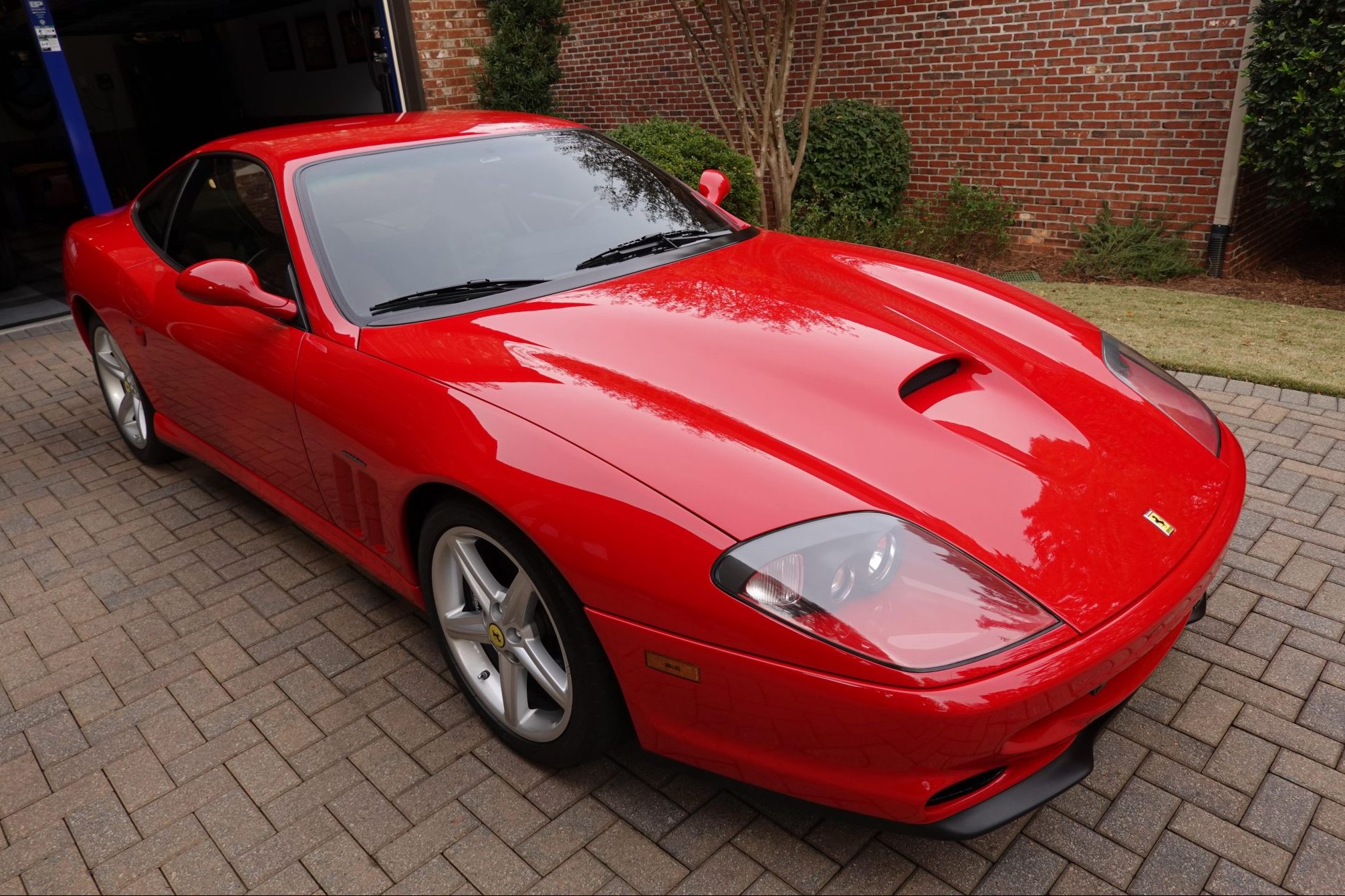 Five-spoke 18″ wheels were sourced from a 575M and wear Michelin Pilot Sport tires showing a mix of 2011 and 2012 date codes. In February 2020, Ferrari of Atlanta replaced the front right shock absorber actuator and re-centered the remaining actuators. Braking is from Ferrari-branded calipers and cross-drilled rotors at all four corners, and a fluid flush was also performed in February 2020.