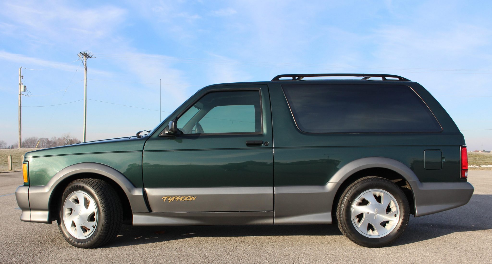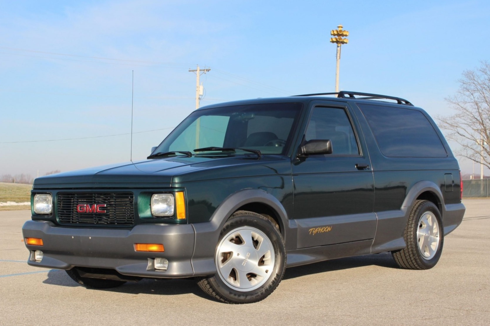 Factory 16” wheels wear GMC-branded center caps and 245/50 Firestone Firehawk SVX tires. Lowering blocks have been added to the suspension.