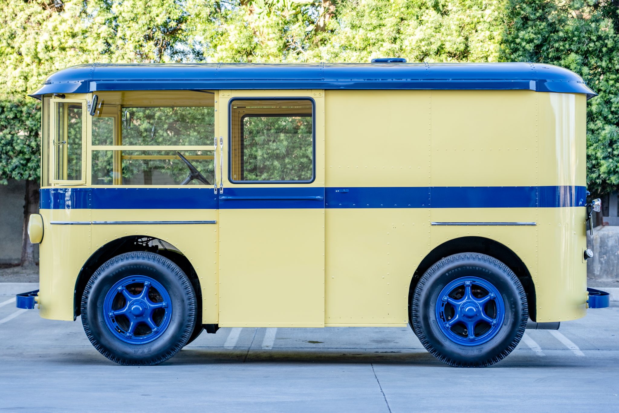 18″ Dayton steel-spoked wheels are wrapped in S.T.A. Super Transport tires. Braking is handled by four-wheel hydraulic drums with exposed shoes and wheel cylinders. The suspension utilizes solid axles and leaf springs at the front and the rear.