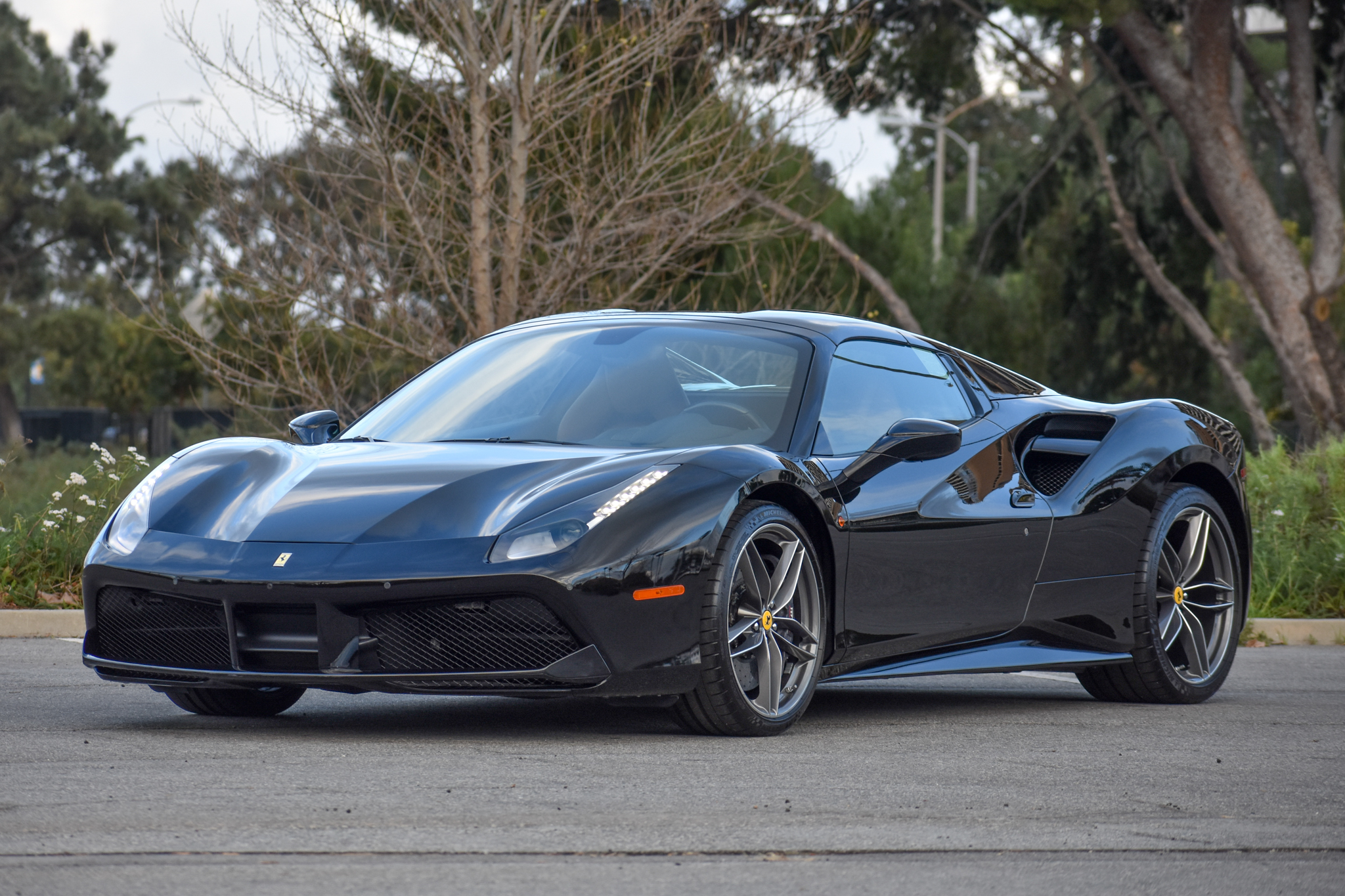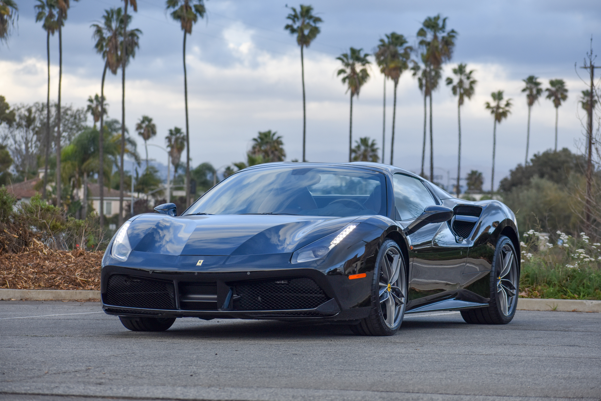 Optional dark-finished 20″ forged diamond wheels are mounted with 245/35 front 305/30 rear Michelin Pilot Super Sport tires. Ferrari-branded Brembo calipers are fitted over carbon-ceramic rotors, and the car is equipped with adjustable magnetorheological dampers, a suspension lifter, and a sport exhaust system.