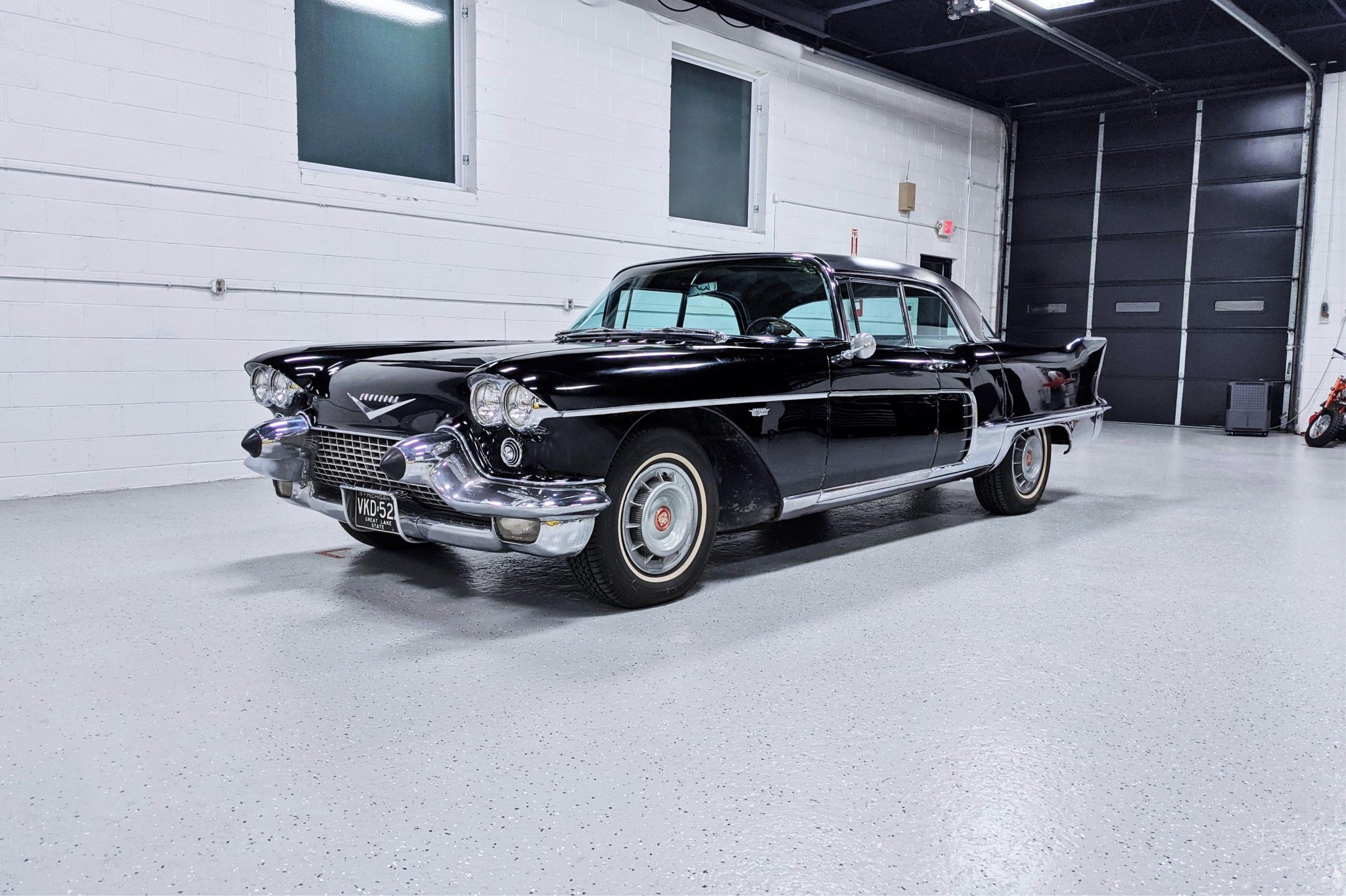 Forged-aluminum 15″ wheels are mounted with Kelly whitewall tires. The factory air suspension has been removed in favor of a coil- and leaf-spring setup, and braking is managed by four-wheel power-assisted drums.