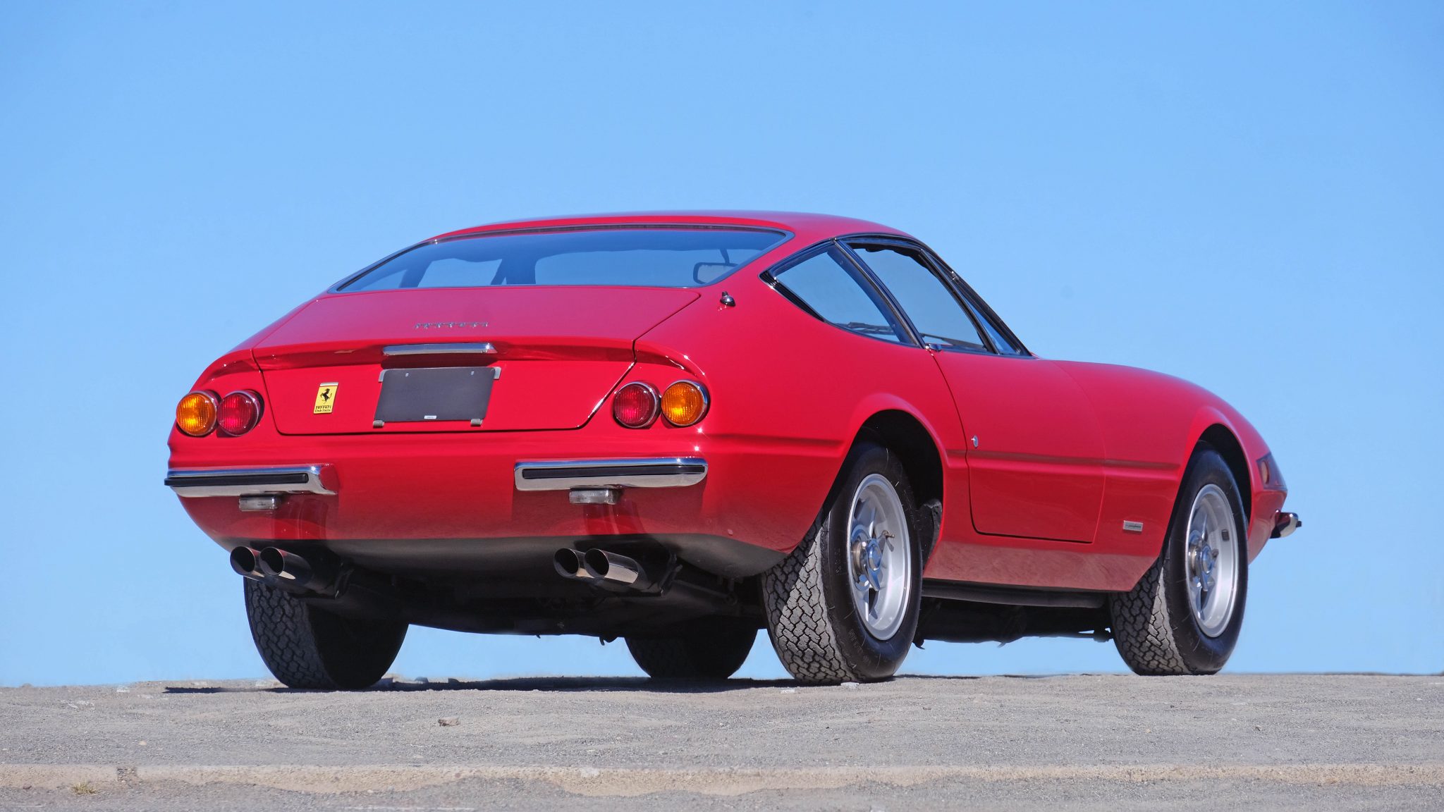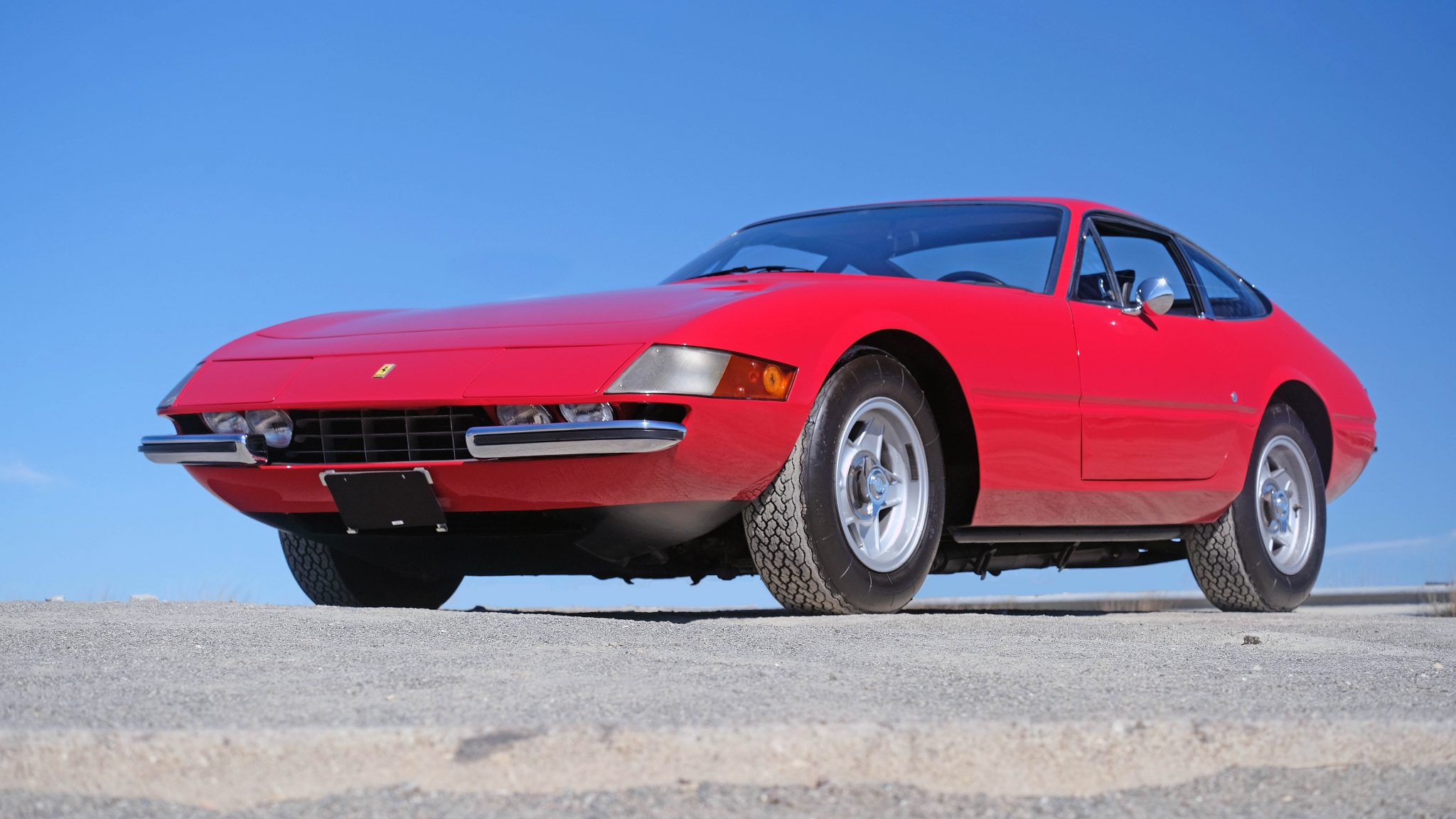 Delivered from the factory in Argento Metallizzato, the car was repainted in its current Rosso Corsa during previous ownership, and the US-spec rear side-marker lights have been deleted. Pop-up headlights were adopted for the model in 1971 to comply with US safety standards and can be seen in their raised position in the gallery below, along with Sekurit and Sigla glass etchings.