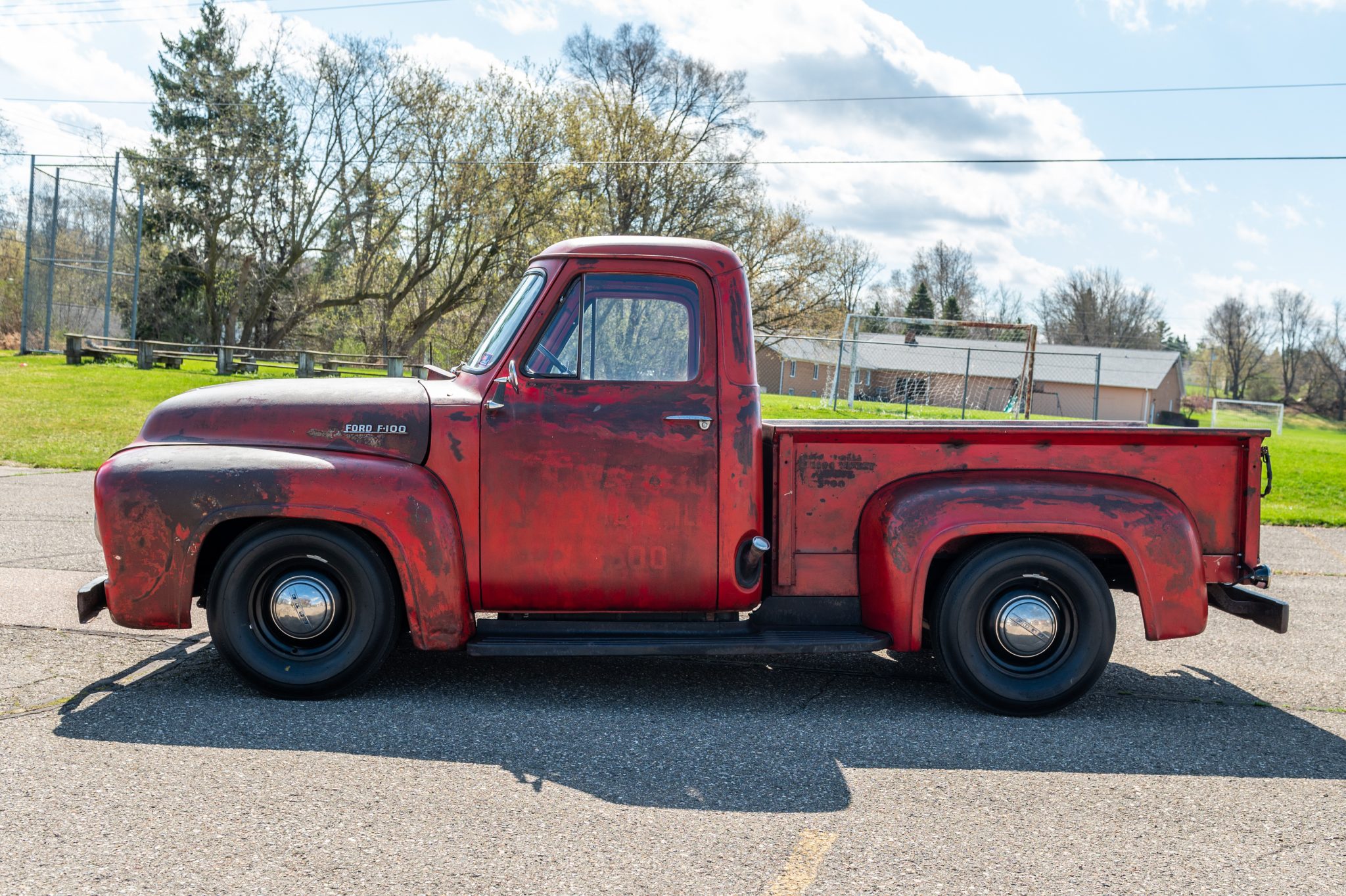 Black-painted 15″ steel wheels wear chrome hubcaps and BFGoodrich Silvertown tires. Equipment reportedly includes a PMT forged front drop axle along with replacement shocks, rear leaf springs, bushings, kingpins, bearings, and steering components. The braking system consists of power-assisted drums at all four corners and is said to include a replacement master cylinder, brake drum cylinders, lines, fittings, and hoses.