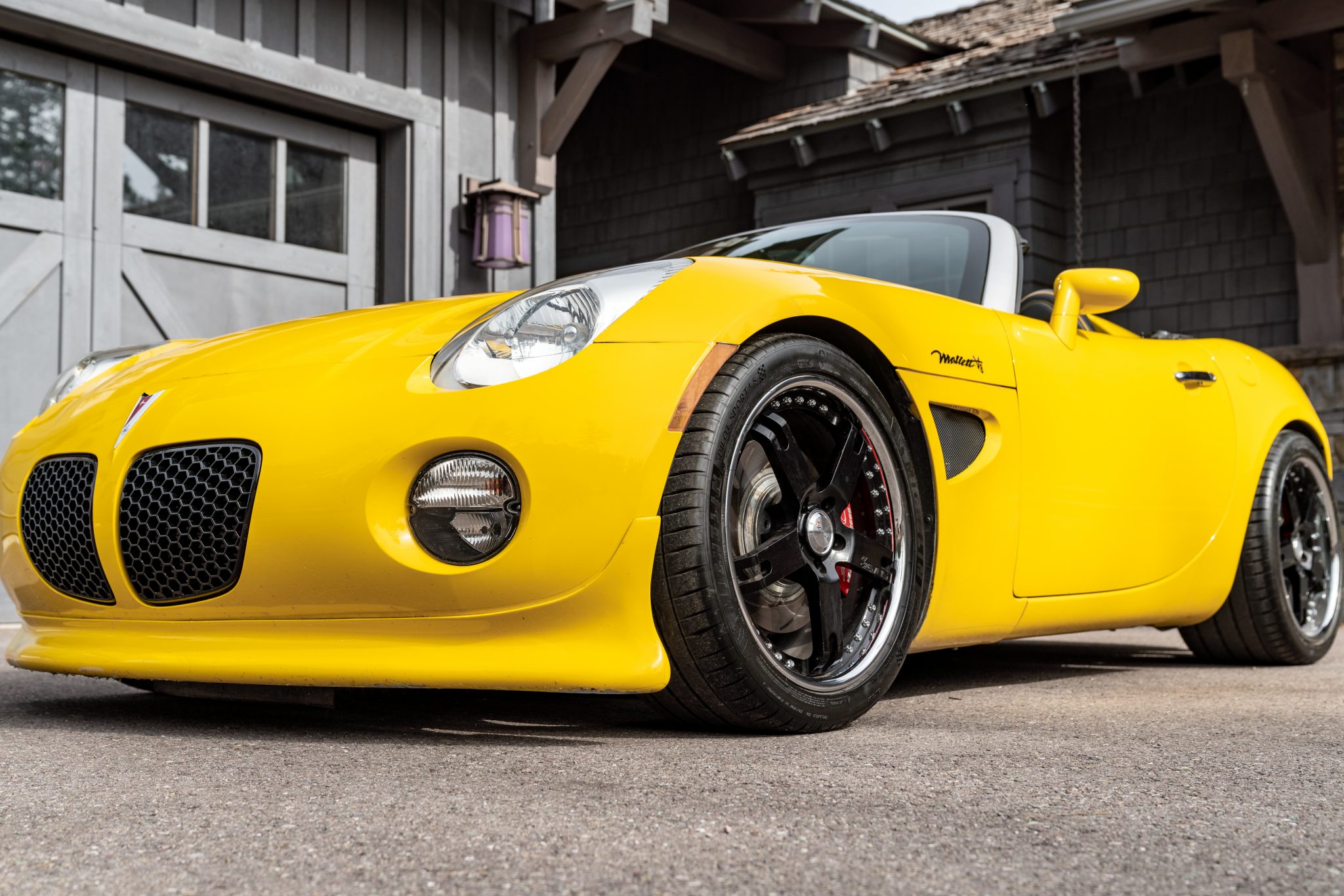 Black 19″ Avus five-spoke wheels are mounted with 275/35 front and 305/30 rear Michelin Pilot Sport 4 S tires that show 2020 date codes. A SSBC Tri-Power brake kit has been added, which features slotted titanium rotors and red Mallett-script calipers. Additional modifications include a power steering cooler, Mallett/Penske coilovers, aftermarket sway bars, and polyurethane rear control arm bushings. The brake fluid was flushed and an alignment was performed in August 2020 per the seller.