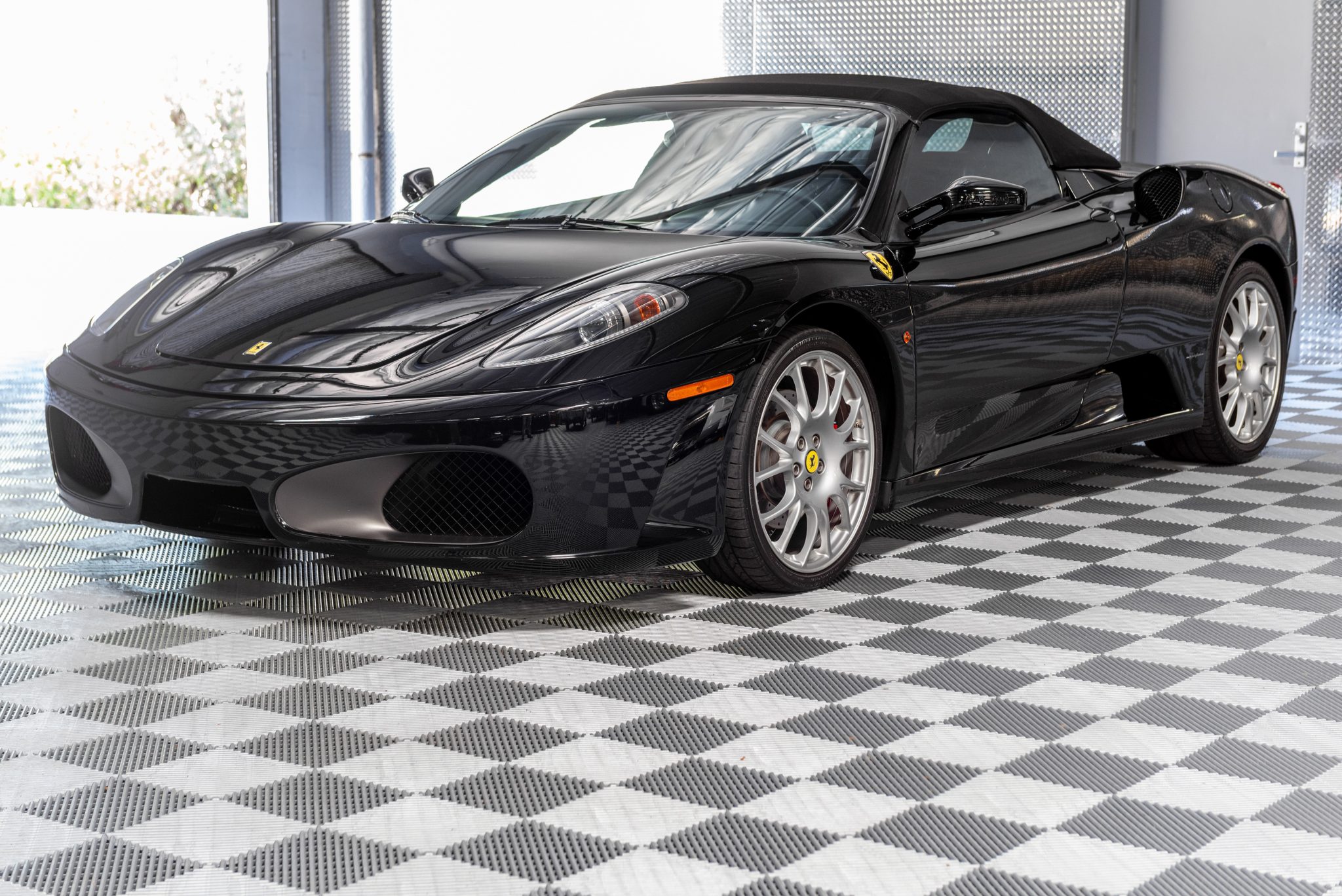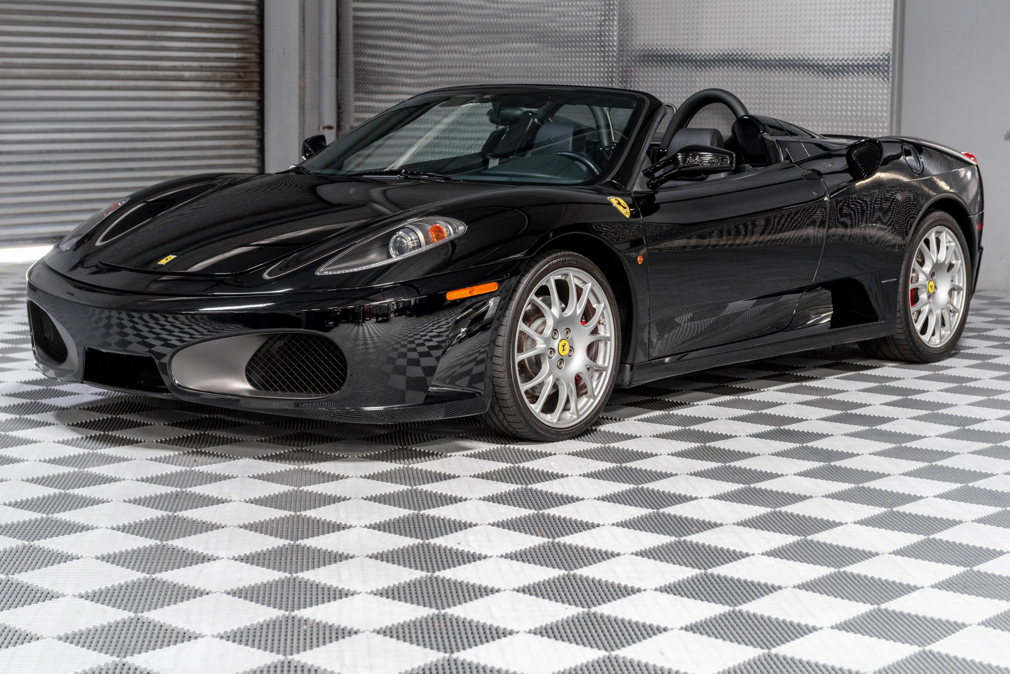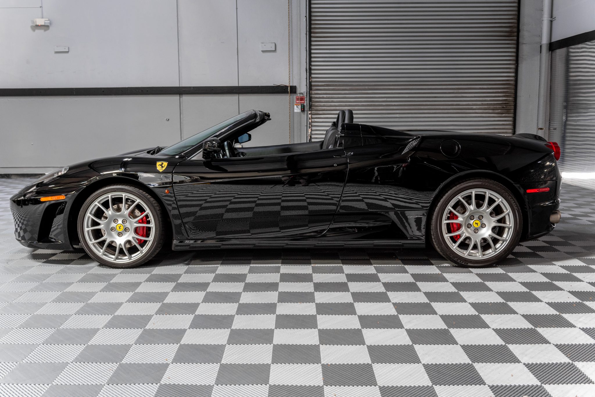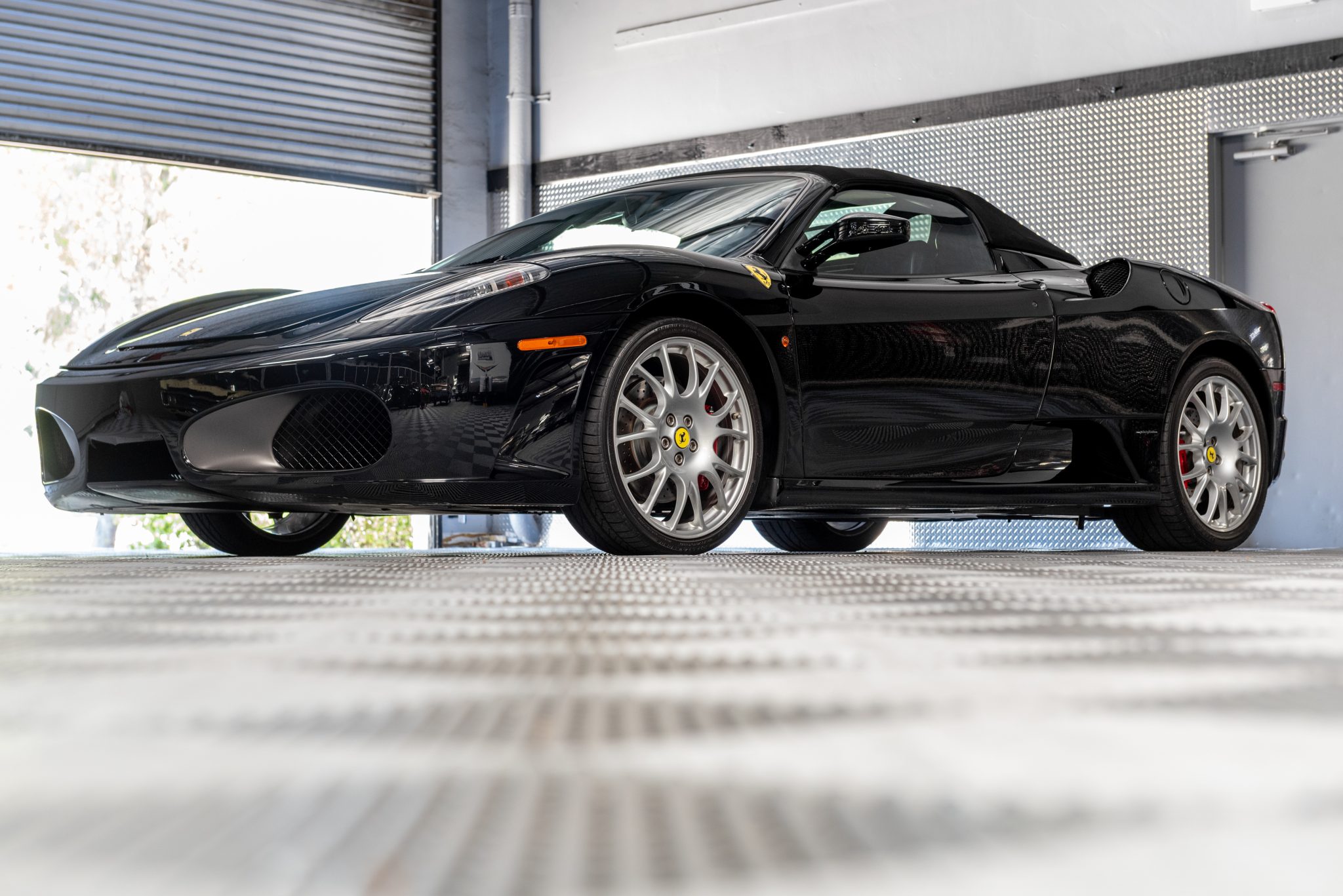 Optional Challenge-style 19″ alloy wheels are wrapped in Bridgestone Potenza RE050A tires measuring 225/35 at the front and 285/35 out back and showing date codes from 2005. Braking is handled by drilled and ventilated rotors with optional red-finished calipers.