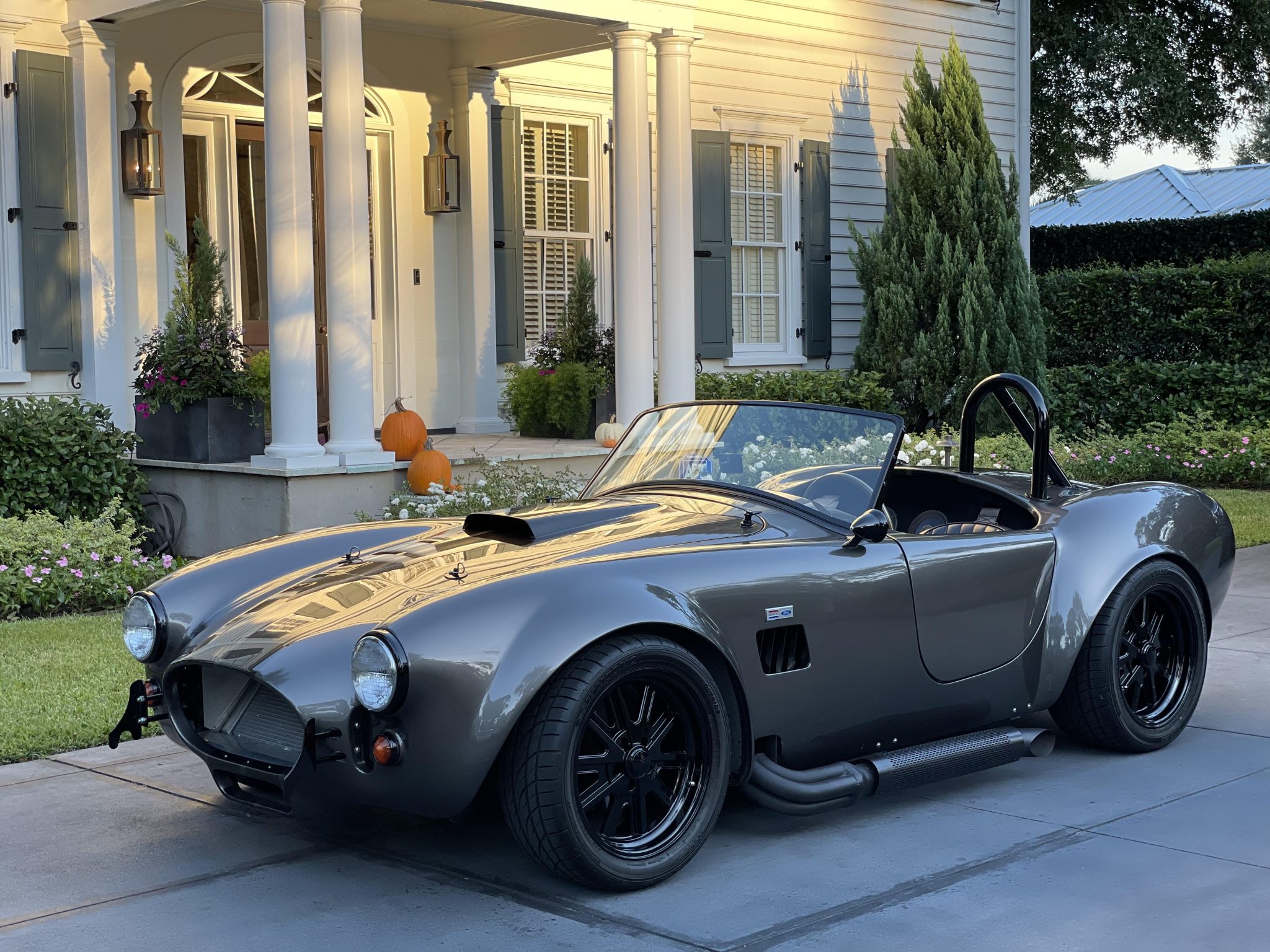 Halibrand-style 17″ wheels are powder coated black and wear Sumitomo HTR ZII tires. The car is equipped with power steering and features disc brakes all around.