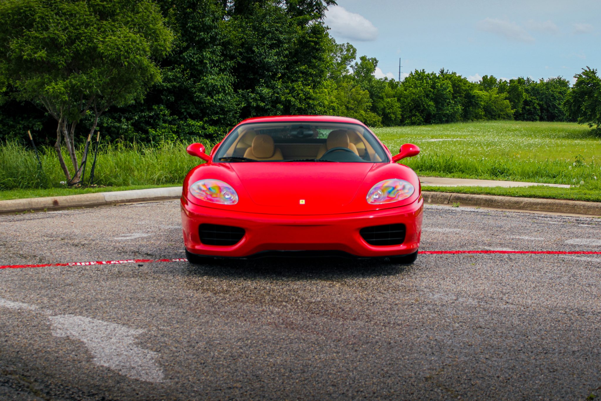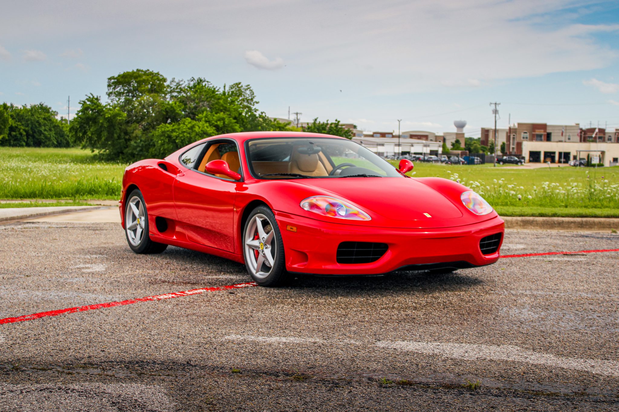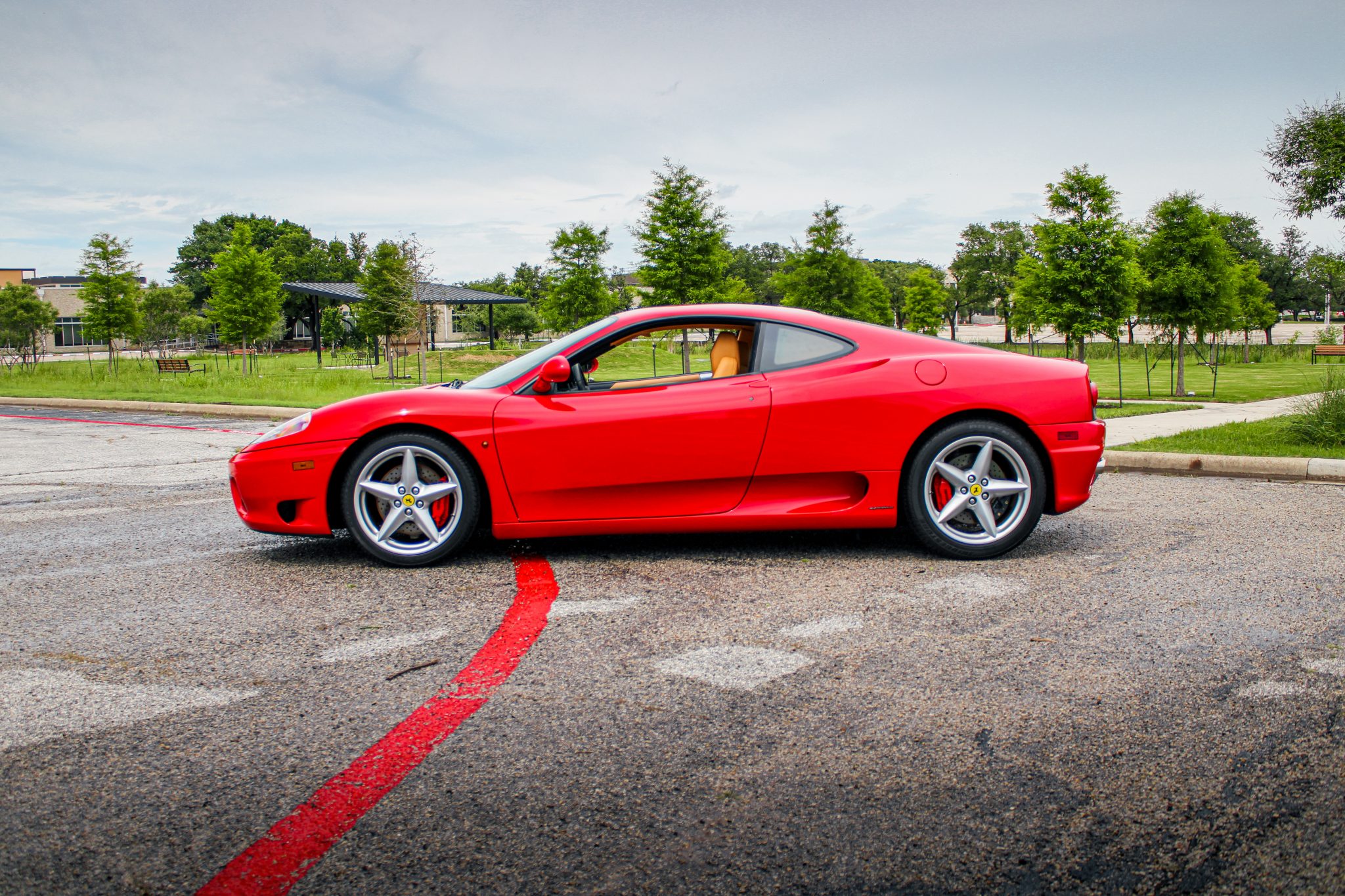 Five-spoke 18″ alloy wheels wear yellow Ferrari center caps and are wrapped in Bridgestone Potenza S-02A tires measuring 215/45 up front and 275/40 out back. Red four-piston brake calipers are paired with cross-drilled rotors at each corner.