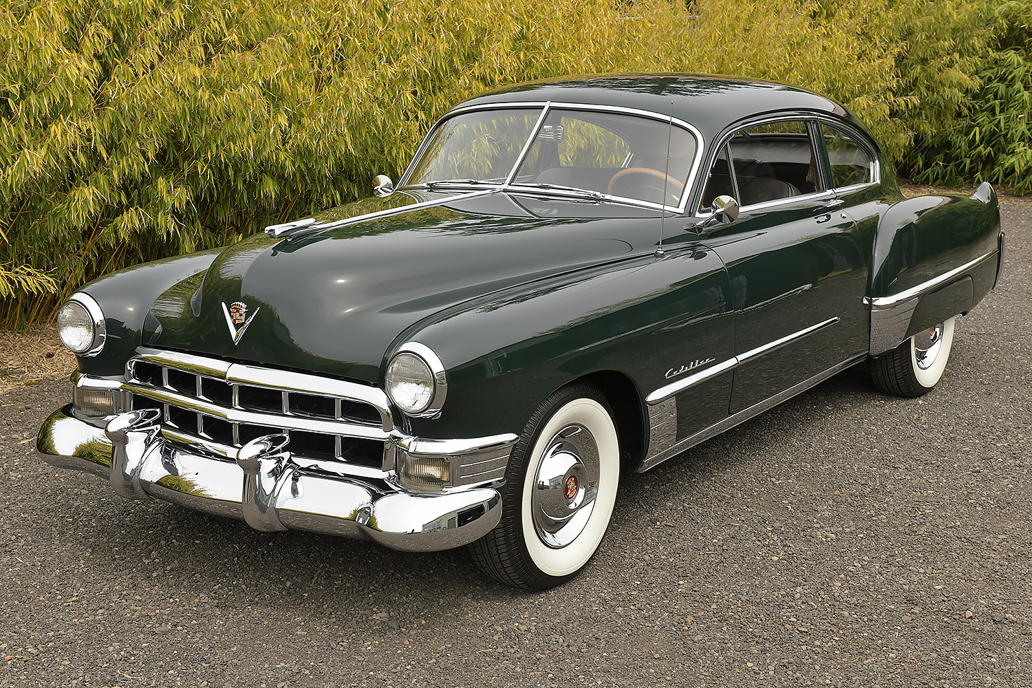 The body was refinished in its factory shade of Dartmouth Green during prior ownership, and records indicate the hood and wheel wells were refinished in 2018. The factory steel wheels were also refinished in black in 2018, and they measure 15″ in diameter and are fitted with Cadillac-branded covers and wide whitewall radial tires bearing 2014 date codes.