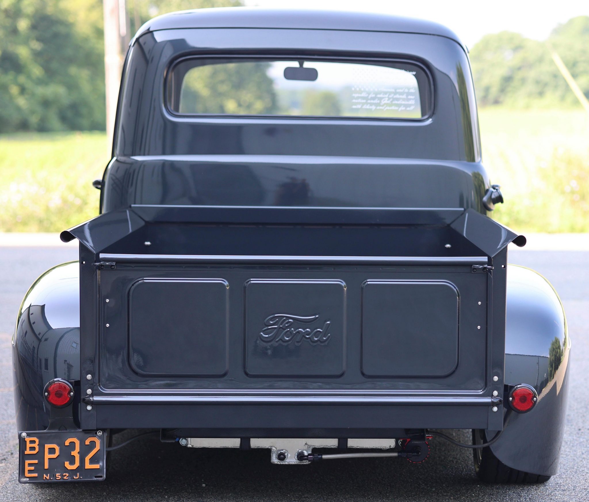 Powder coated Detroit Steel Delray wheels wear Nitto redline tires and braking is provided by power-assisted four-wheel discs. The truck features power rack and pinion steering, front and rear swaybars, and the frame is said to have been boxed to accommodate independent front suspension with coilovers, and a triangulated rear 4-link suspension with coilovers.