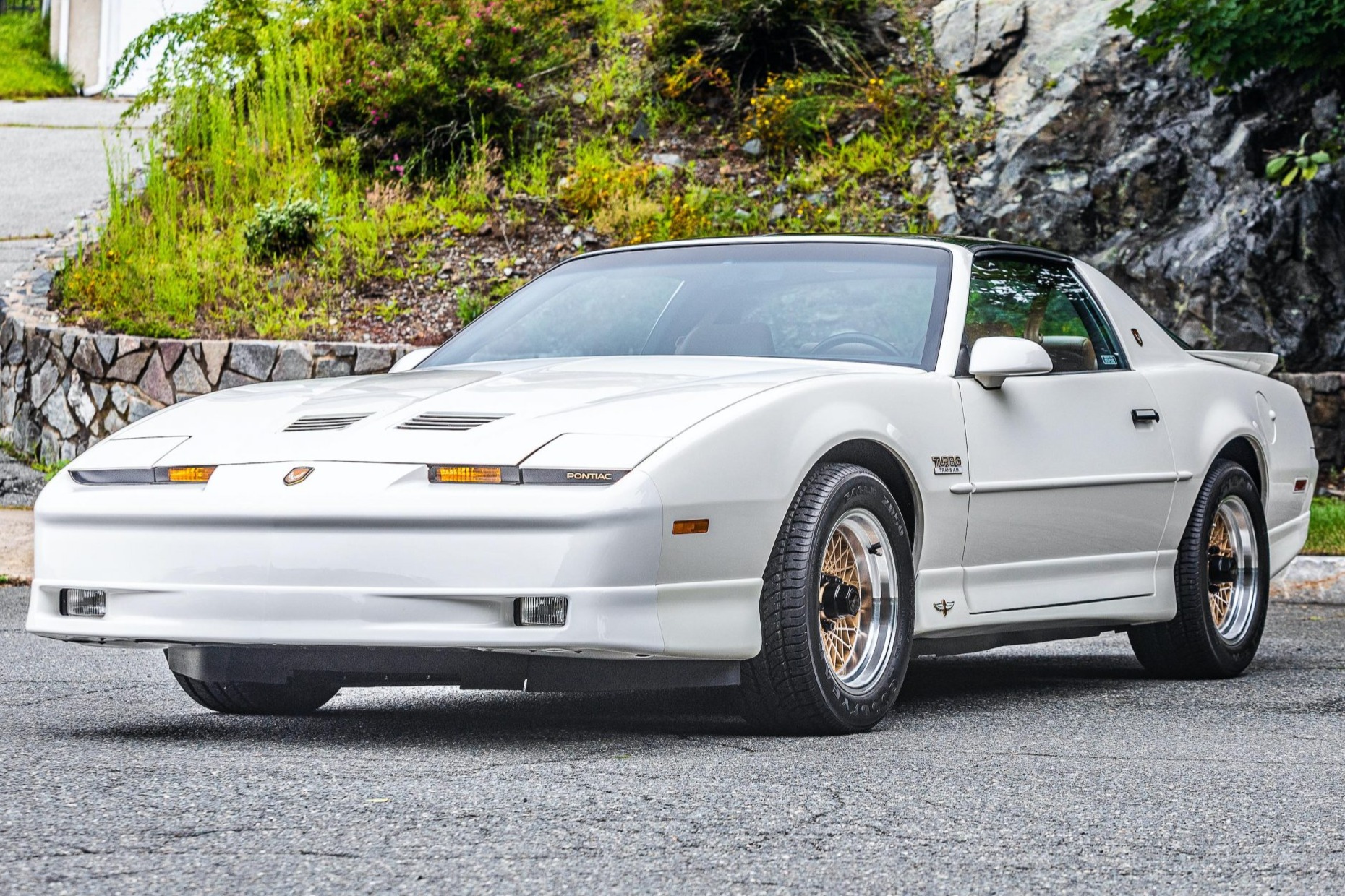Gold-finished 16″ basketweave wheels with bright lips and WS6-logo center caps are mounted with 245/50 Goodyear Eagle ZR50 tires. Turbo Trans Am models are equipped with heavy-duty four-wheel disc brakes and a WS6 high-performance suspension.