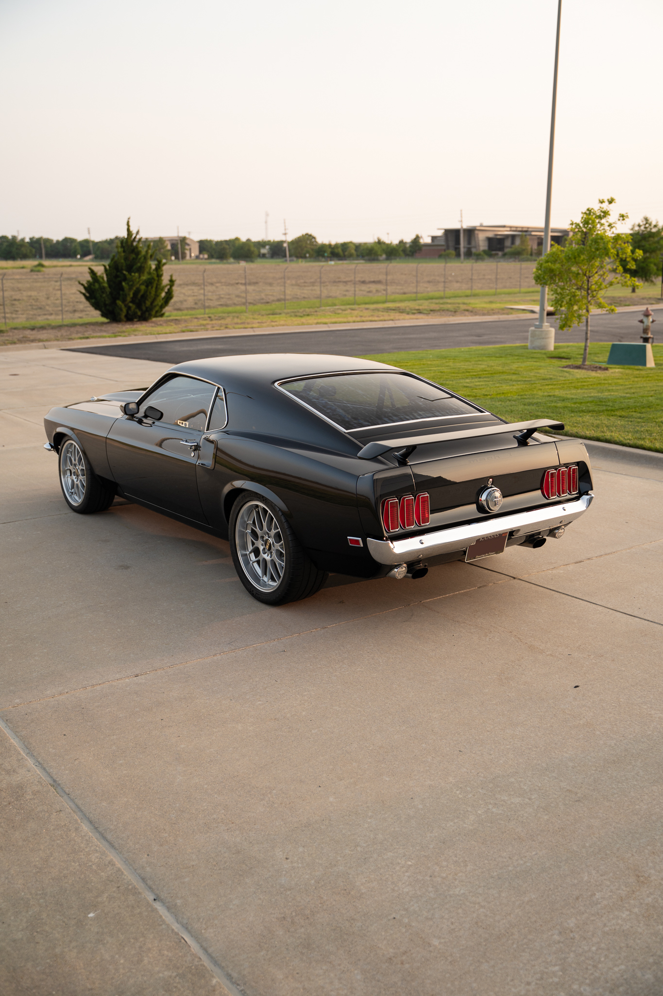 Forged 19″ BBS RGR forged wheels are wrapped in 245/40 front and 305/35 rear Michelin Pilot Super Sport tires. The car is reportedly equipped with manual Flaming River rack and pinion steering, an AJE K-member, Strange Engineering front coilovers, 2004 Mustang front hubs, Strange Engineering rear axles, and a Total Control Products 4-link rear suspension. Braking is from front and rear discs with cross-drilled and slotted rotors all around.