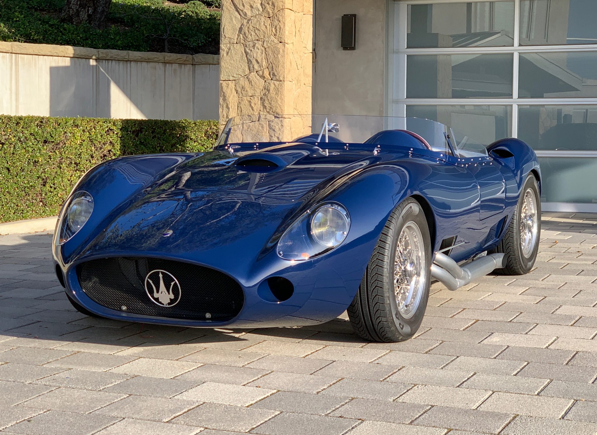 Custom-size 16×7″ Borrani wire wheels feature aluminum rims, stainless steel spokes, three-eared knock-off nuts, and Pirelli all-season radials. Suspension comprises modified upper and lower front A-arms, an Art Morrison triangulated four-bar rear end, and Vari coilovers at each corner. Braking is from Girling ventilated discs front and rear, which are actuated by an unassisted dual-circuit Tilton master cylinder.