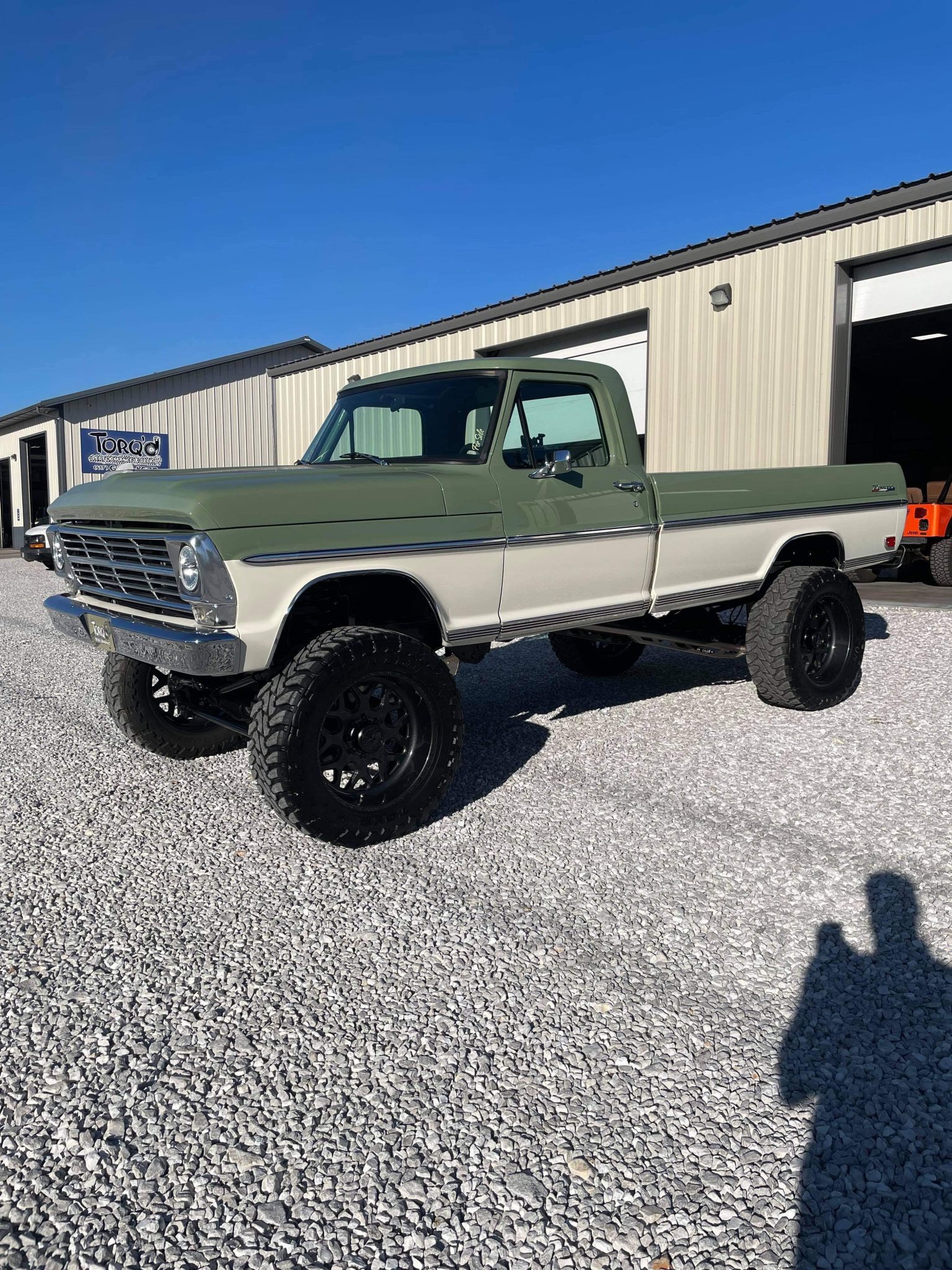 Powder coated 22″ American Force wheels wear 37×13.50″ Toyo MT Open Country tires. The suspension has been modified with Bilstein shock absorbers, a PMF four-link front axle, traction bar system, and lift blocks as well as a BD adjustable track bar and power steering. Braking is provided by power-assisted four-wheel discs.
