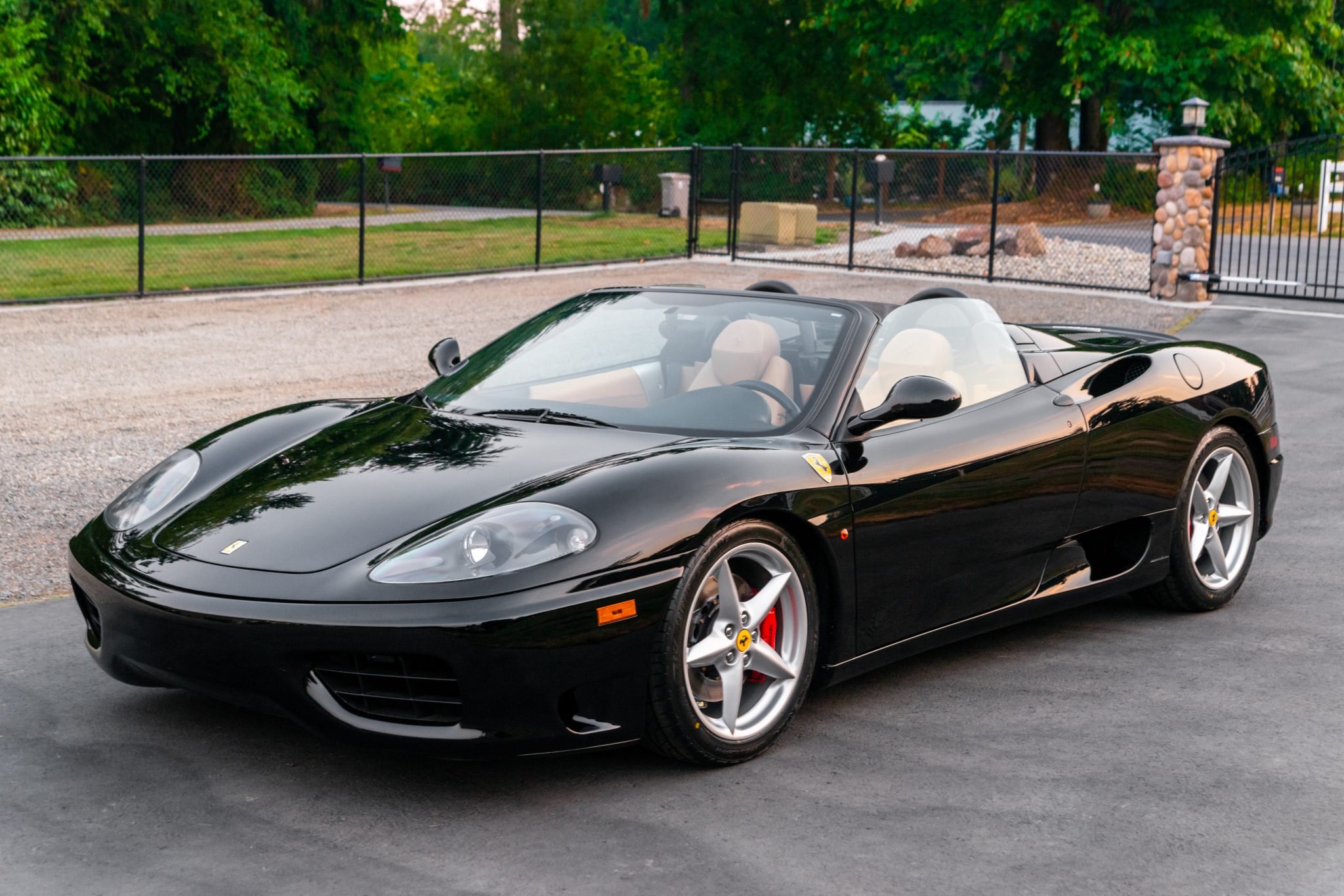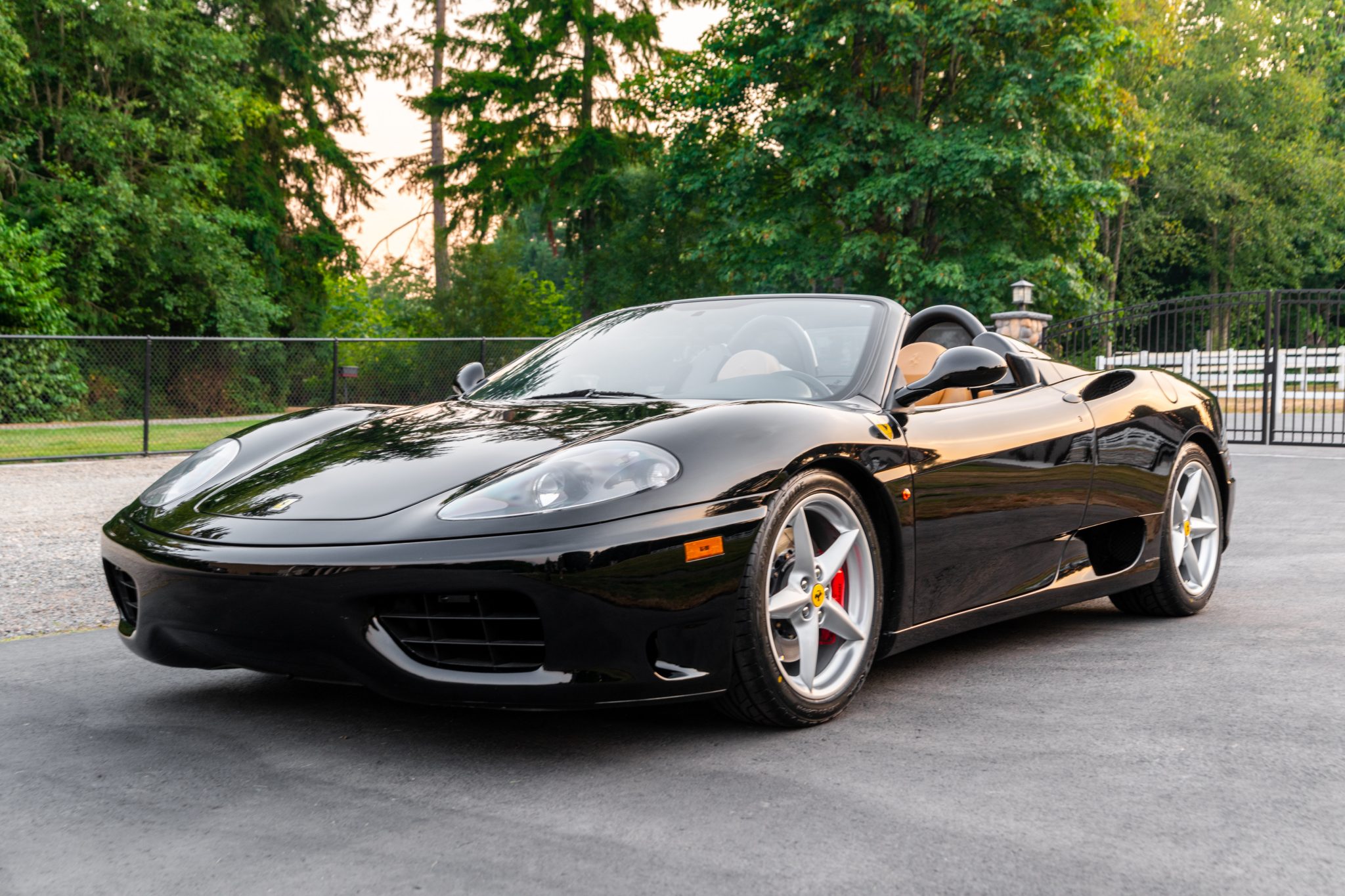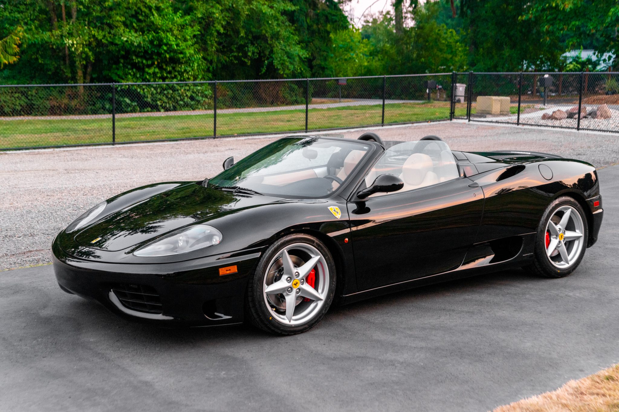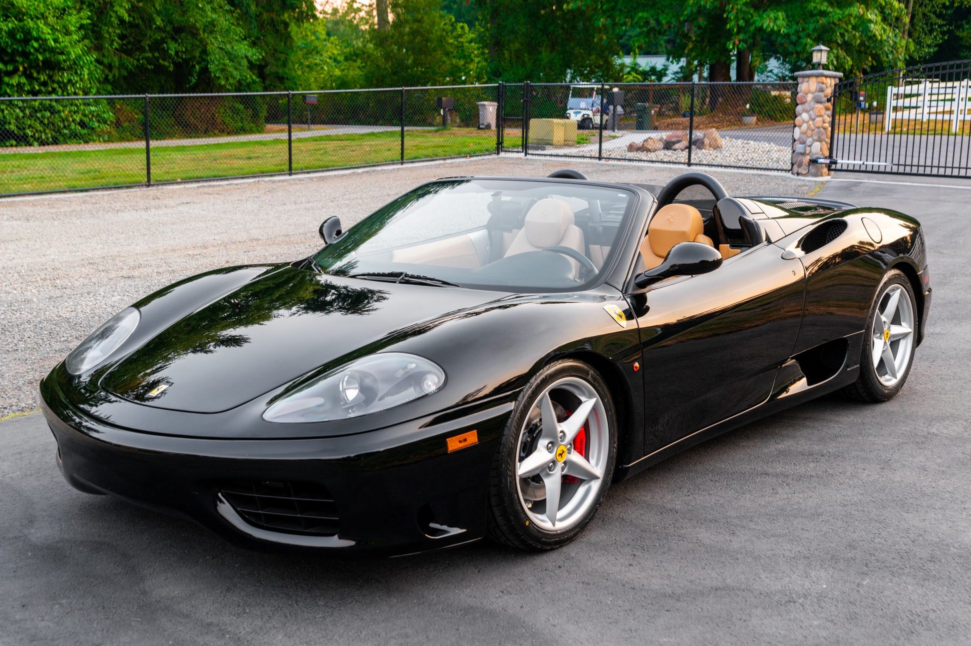 Factory 18″ five-spoke wheels are fitted with prancing horse center and valve stem caps and wear Bridgestone Potenza RE760 Sport tires. Red-finished brake calipers are paired with slotted Giro Disc two-piece rotors at all four corners, and brake fluid flush was recently carried out.