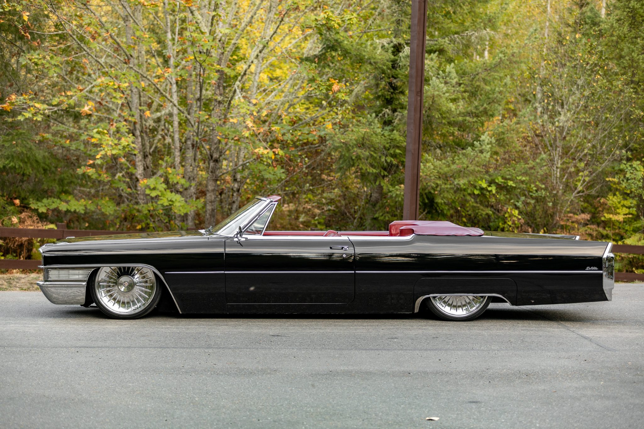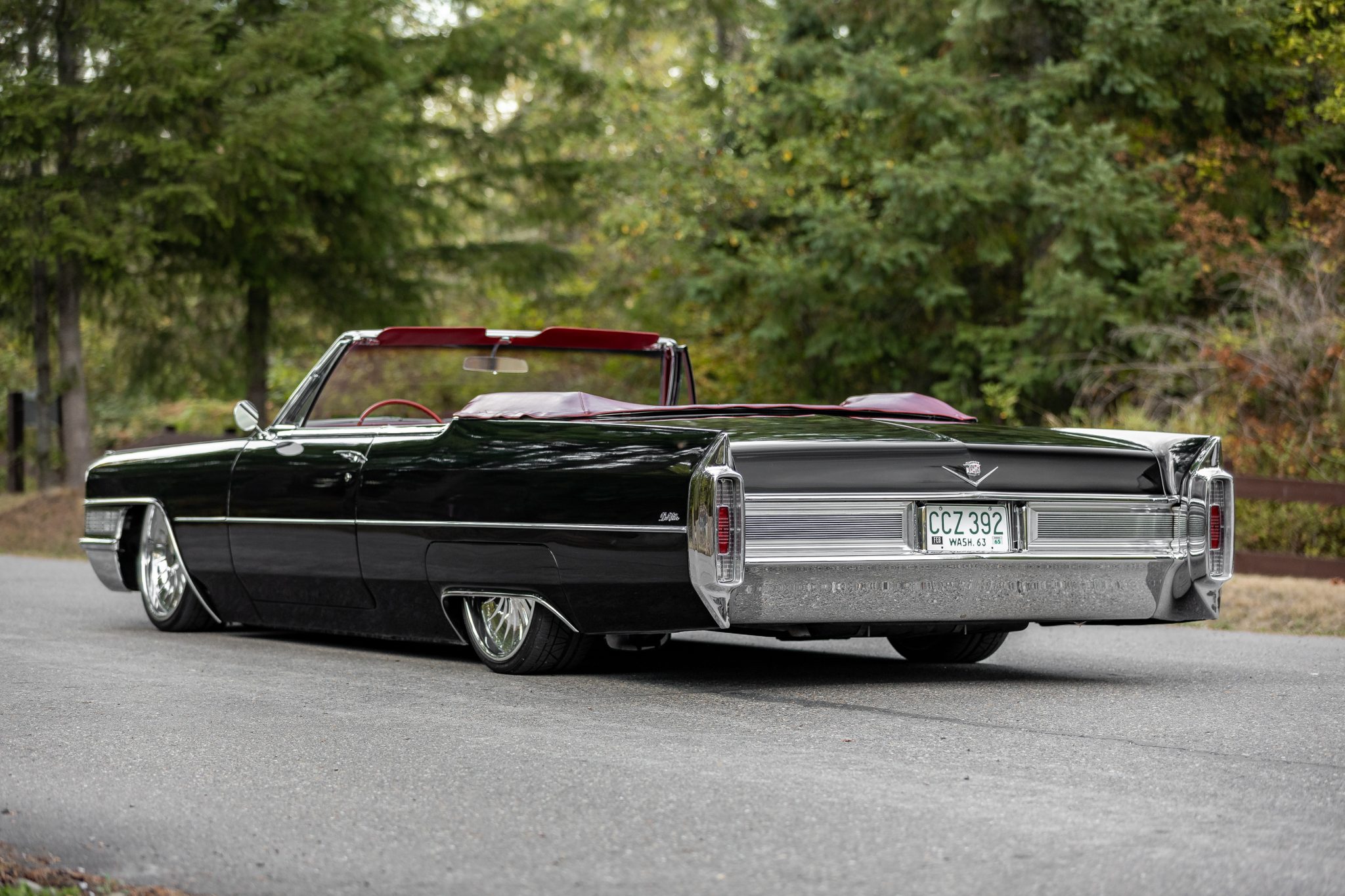 Colorado Custom 22″ wheels with a chrome finish are mounted with 245/30 Nitto tires that were installed during current ownership. The front and rear brake components have been replaced, and suspension has been modified with an adjustable air system installed by Those Guys Rod & Customs of Bremerton, Washington.
