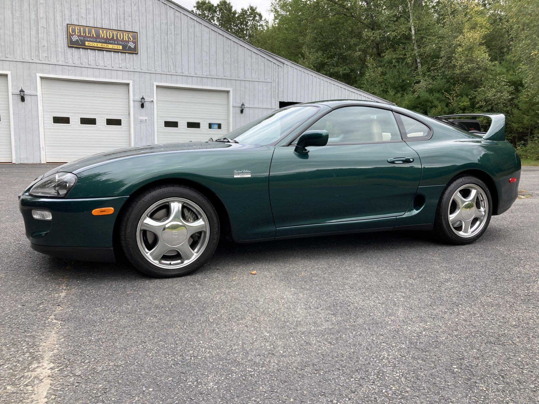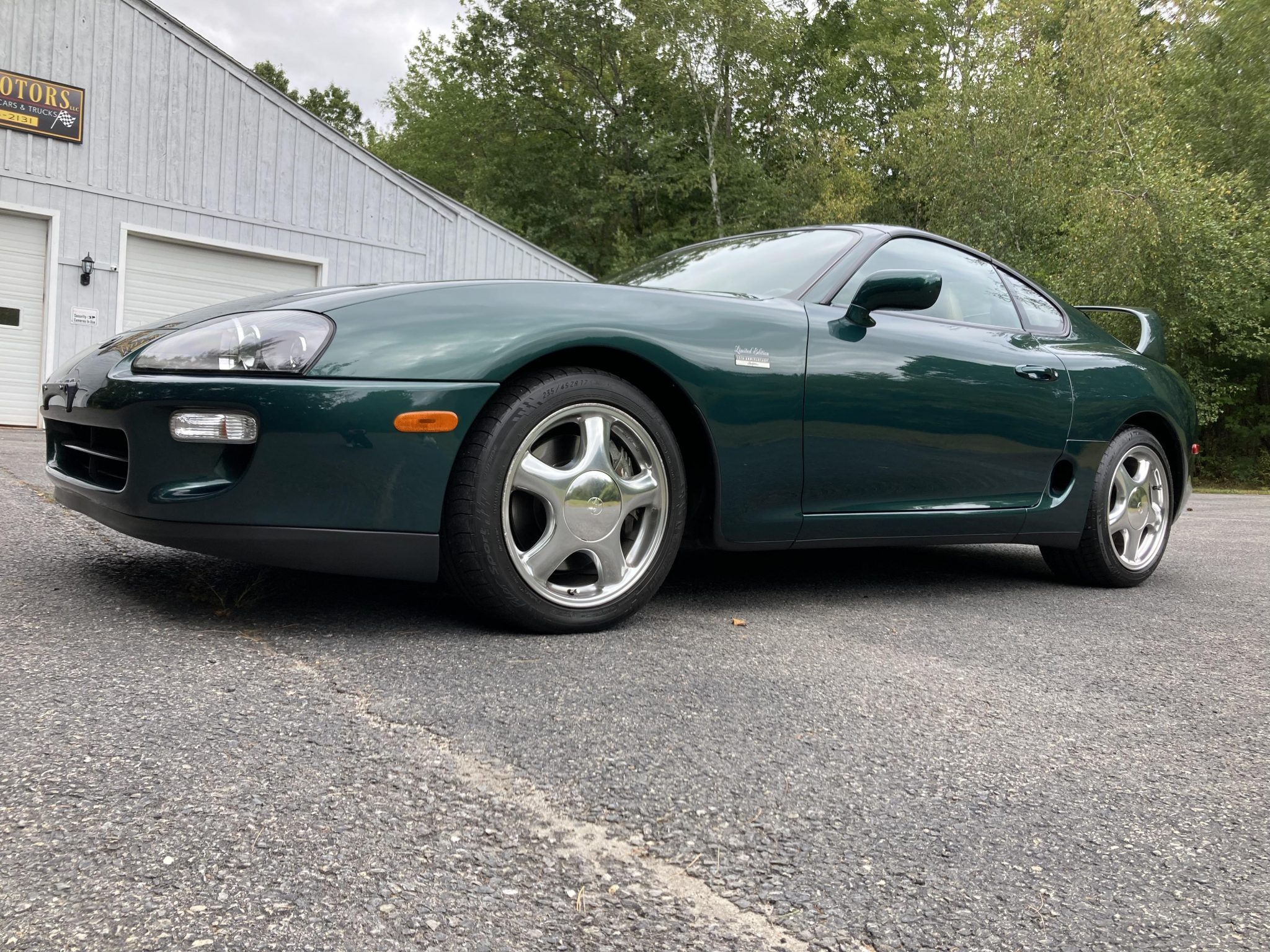 Staggered-width 17″ chrome-finished wheels are wrapped in Michelin Pilot Sport tires measuring 235/45 up front and 255/40 out back. Braking is handled by four-wheel anti-lock discs paired with Supra-branded calipers, and the car is equipped with traction control. A spare wheel is located in the trunk along with a tool kit. Curb rash is visible on the wheels, as shown in the gallery below.