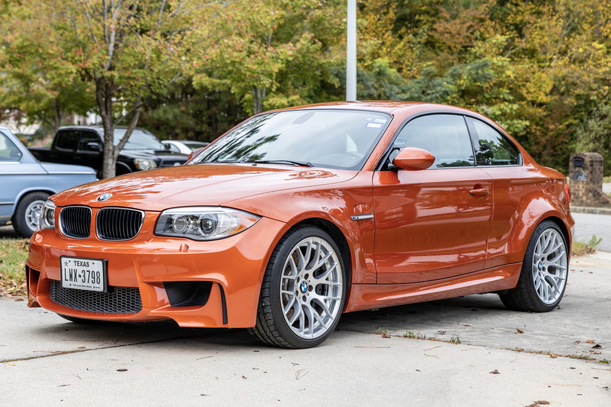 Silver-finished 19″ Style 359 alloy wheels wear Michelin Pilot Sport tires that show 2015 tires. The 1M utilizes suspension and braking components sourced from the contemporary M3, including the rear subframe.
