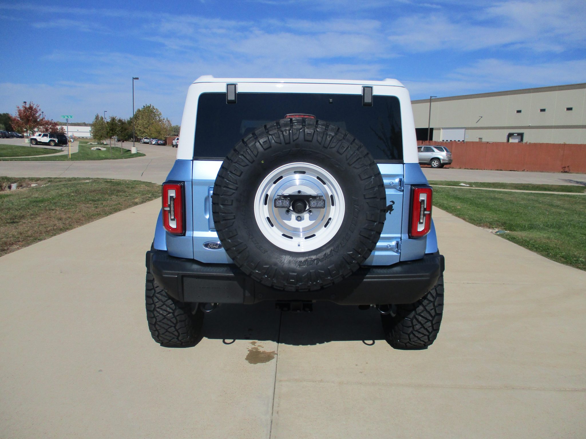 The 17″ KMC Roswell wheels were finished in white with Brittany Blue pinstriping by Dent Wizard of St. Louis, Missouri, and they are mounted with 37″ Nitto Ridge Grappler tires. A matching spare wheel is mounted with an LED third brake light out back. The suspension was reportedly modified by Hellbent Customs of Chesterfield, Missouri, with a 4 Wheel Parts 3.5″ coilover lift kit with control arms. The anti-lock braking system features discs at all four corners.
