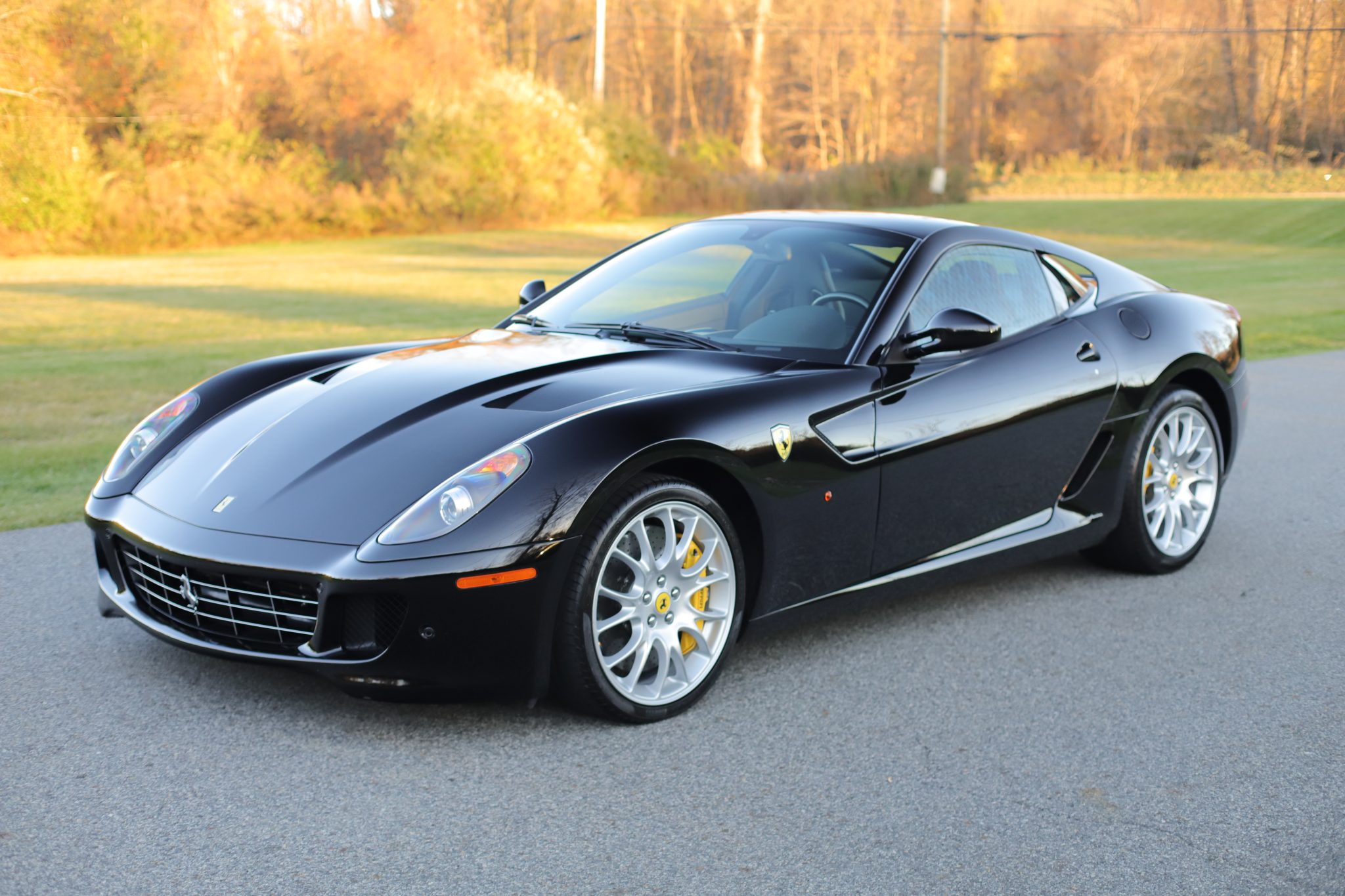 Optional 20″ Monolithic alloy wheels are finished in silver and wear 245/35 front and 305/35 rear Pirelli P Zero tires showing 2013 and 2015 date codes, respectively. The 599 rides on an aluminum chassis with a semi-active magnetorheological suspension system, while stopping power is from cross-drilled carbon-ceramic brake rotors clamped by yellow Ferrari-branded calipers at all four corners.