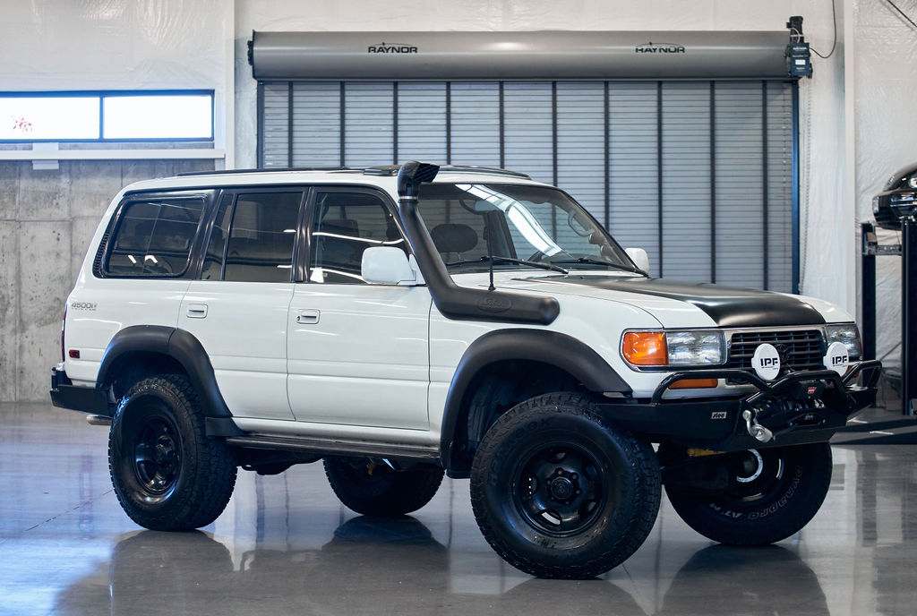 Factory 16″ wheels are finished in black and wear Hankook Dynapro ATM tires measuring 315/75 all-around. The truck has been modified with an Old Man Emu lift kit and steering stabilizer and the seller reports the front axles were rebuilt and the brake rotors and pads were replaced under prior ownership. The seller notes a power steering leak and deterioration in the suspension rubber components.