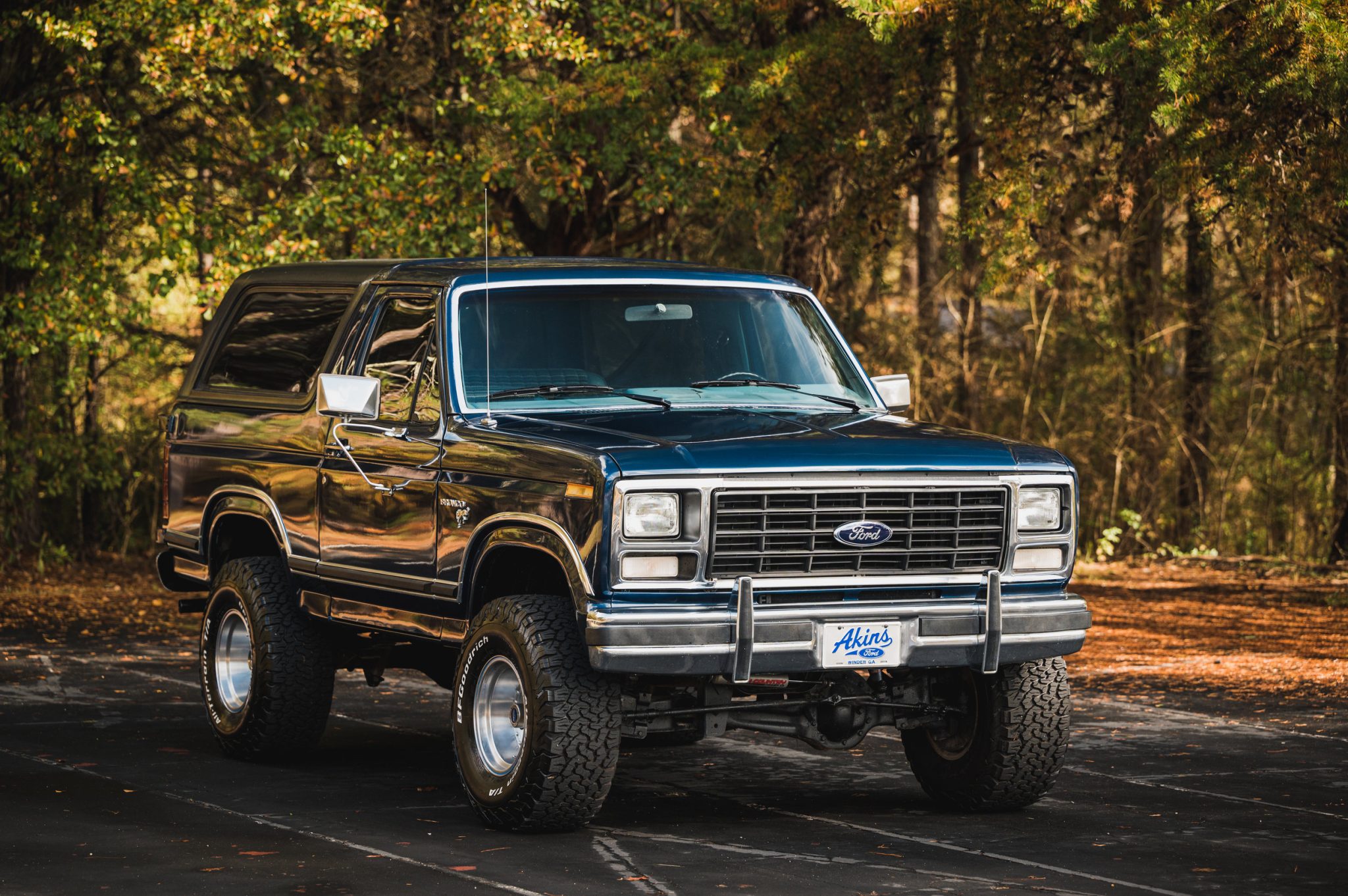The 15″ aluminum wheels are mounted with 33×12.5″ BFGoodrich All-Terrain T/A white letter tires. The truck is fitted with a Rough Country suspension lift kit, power steering, and manually locking front hubs. Braking is provided by power-assisted front discs and rear drums.