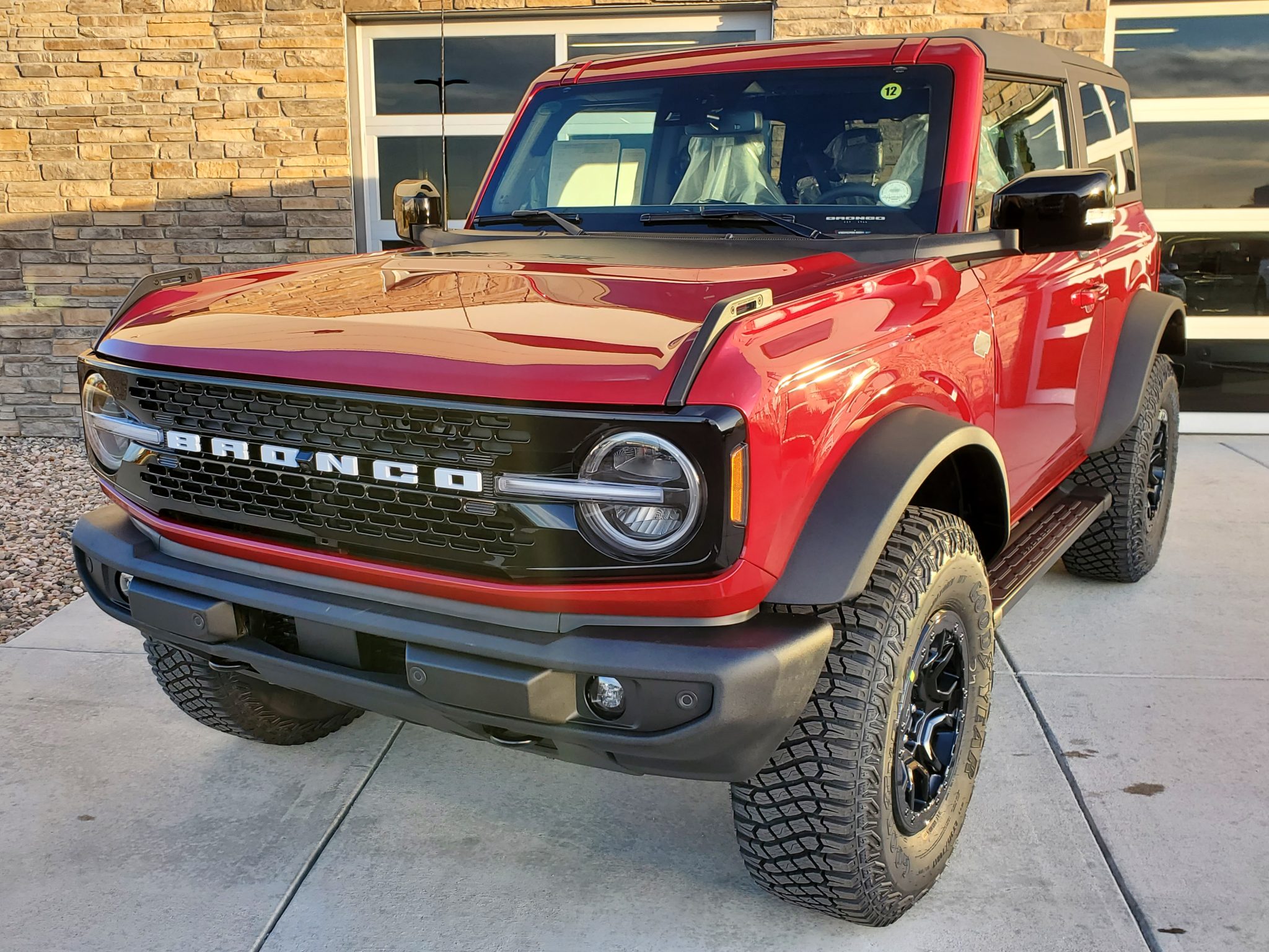 Beadlock-capable 17″ forged aluminum wheels are finished in black and wrapped in 315/70 Goodyear Territory MT tires. A matching spare is mounted to the rear cargo door. Braking is handled by four-wheel anti-lock discs, and the truck is equipped with an electronically-controlled front sway bar, Bilstein monotube shocks, Roll Stability Control, and the Terrain Management System, which features six selectable “Goes Over Any Type of Terrain” (GOAT) drive modes.