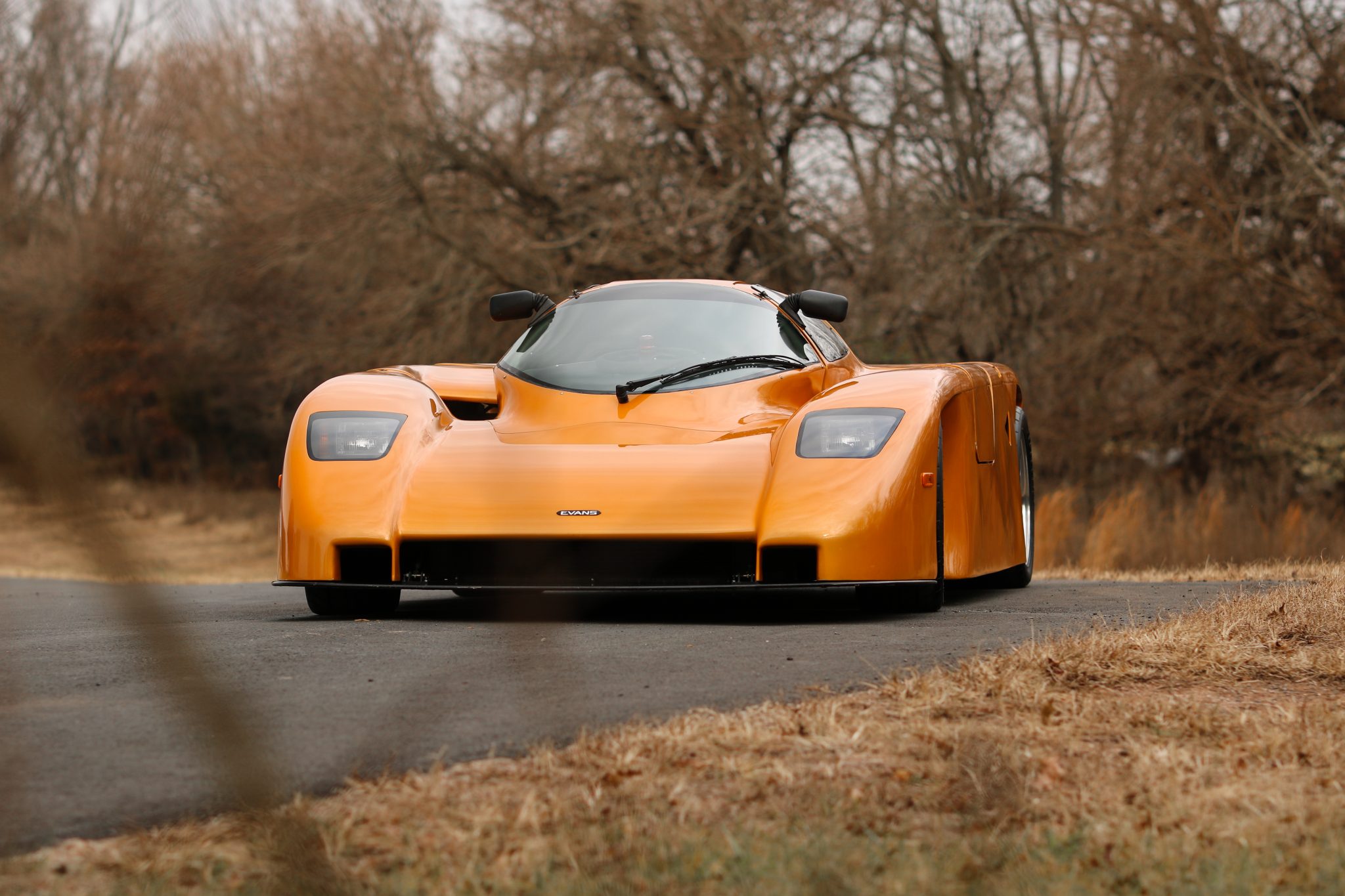 The multi-piece 17″ wheels feature basketweave inserts with Evans-branded center-lock hubs and are mounted with 245/40 front and 315/35 rear BFGoodrich g-Force T/A tires. The Series I GT rides on a 105″ wheelbase and features a semi-monocoque chassis with aluminum honeycomb panels. The fully-independent suspension features C4 Corvette-sourced aluminum unequal-length control arms along with coilovers at all four corners. The suspension was modified and the Corvette components were installed by Team York Racing of York, Pennsylvania in 2007 along with a Mazda Miata-sourced steering rack and C4 ZR-1-sourced disc brakes. This chassis was reportedly used as a development mule by Evans, spending time on track before conversion to road specification.