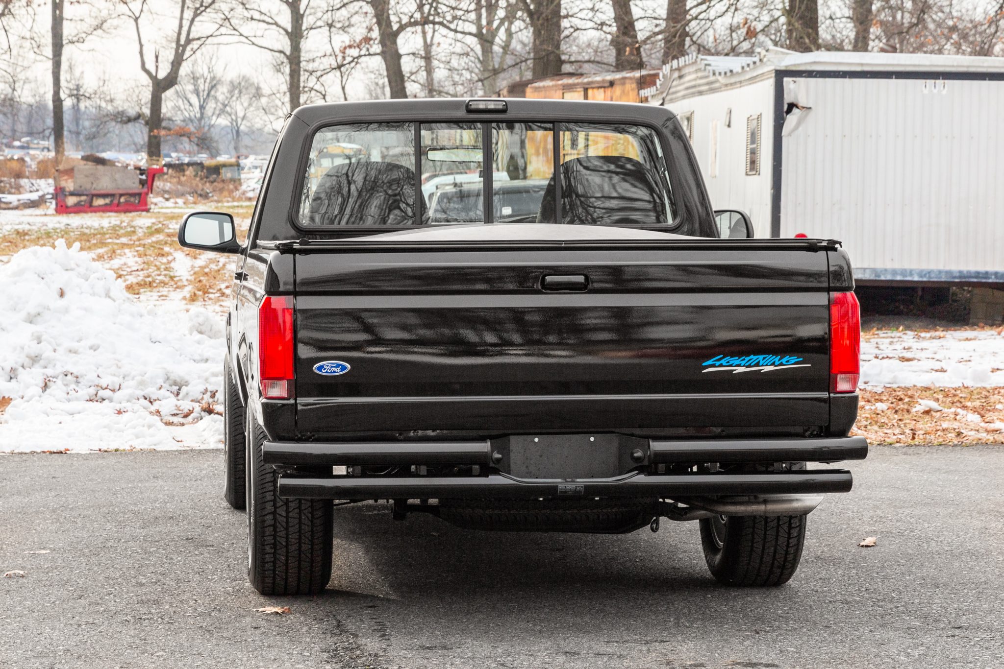 Factory 17″ alloy wheels wear 275/60 Firestone Firehawk GTA tires, and a spare wheel and tire are mounted to the underside. The Lightning is equipped with the Handling Package suspension with a lower ride height when compared with the standard F-series pickup.