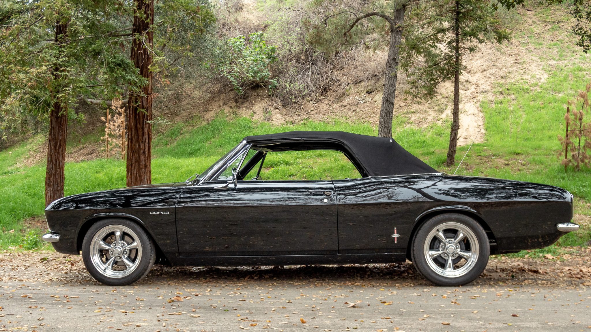 Chrome 16″ American Racing Torq Thrust wheels are mounted with 205/50 front and 225/50 rear Goodyear Eagle F1 tires showing 2004 date codes. Work completed during the refurbishment reportedly included overhauling the suspension and installing Bilstein dampers, front disc brakes, a dual-circuit master cylinder, and a Flaming River quick-ratio steering box.