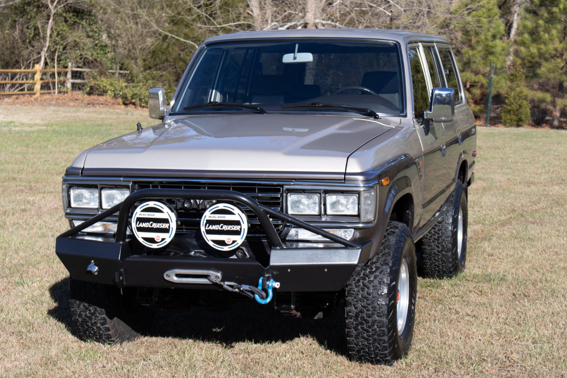 Aftermarket polished 15″ wheels are mounted with 33×10.5″ BFGoodrich All Terrain T/A K02 tires. Equipment includes Old Man Emu suspension components, a power steering fluid cooler, and lockable front hubs. Drilled and slotted rotors have been fitted up front, and the brakes were overhauled during the build.