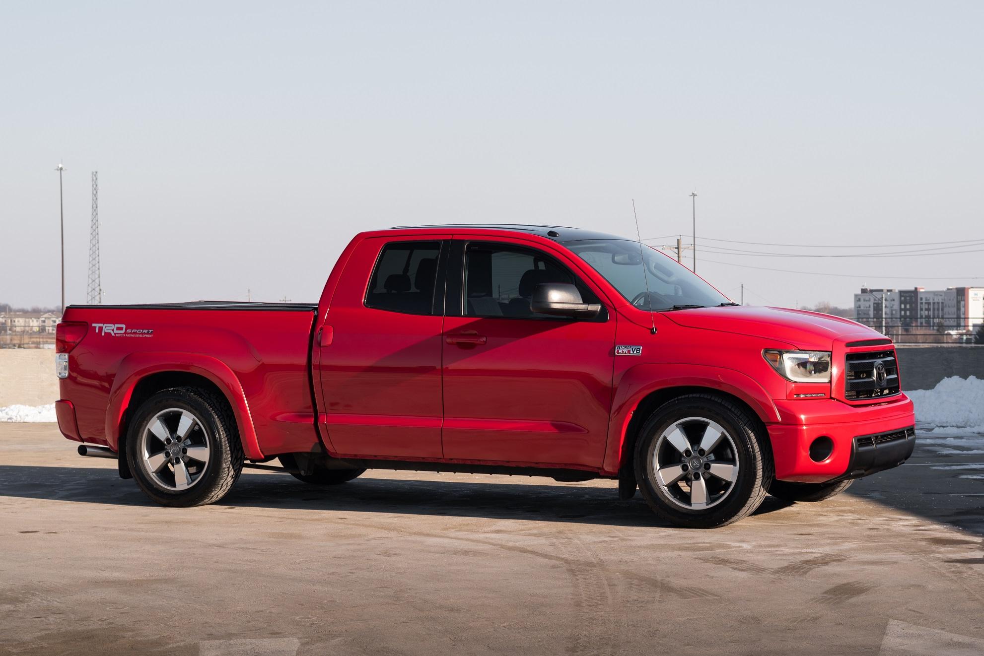 Factory 20″ wheels are wrapped in 305/50 Nitto tires. Stopping power is provided by brake calipers sourced from a 2016 Tundra squeezing EBC rotors and pads at all four corners. The suspension is equipped with a TRD rear sway bar and springs, a Toyota Sequoia front sway bar with urethane bushings, Bilstein shocks, and Caltracs traction bars. The seller states that the brake pads were changed in preparation for the sale and that the spare tire was removed but is included in the sale along with a set of 22″ TRD wheels.