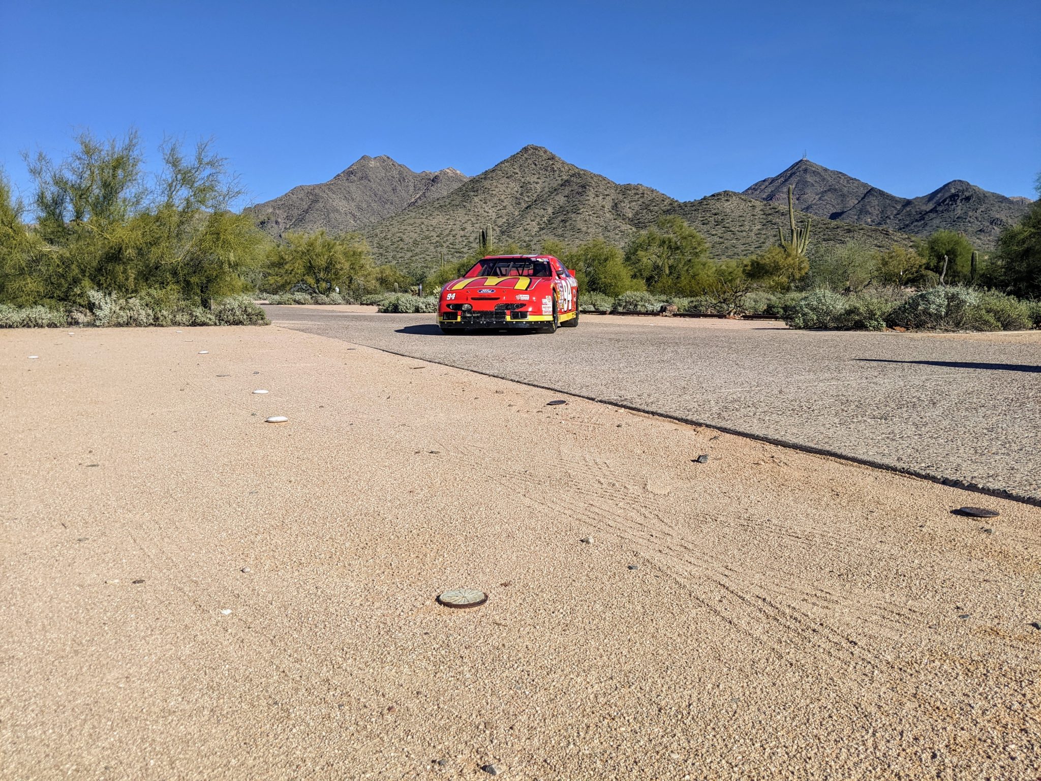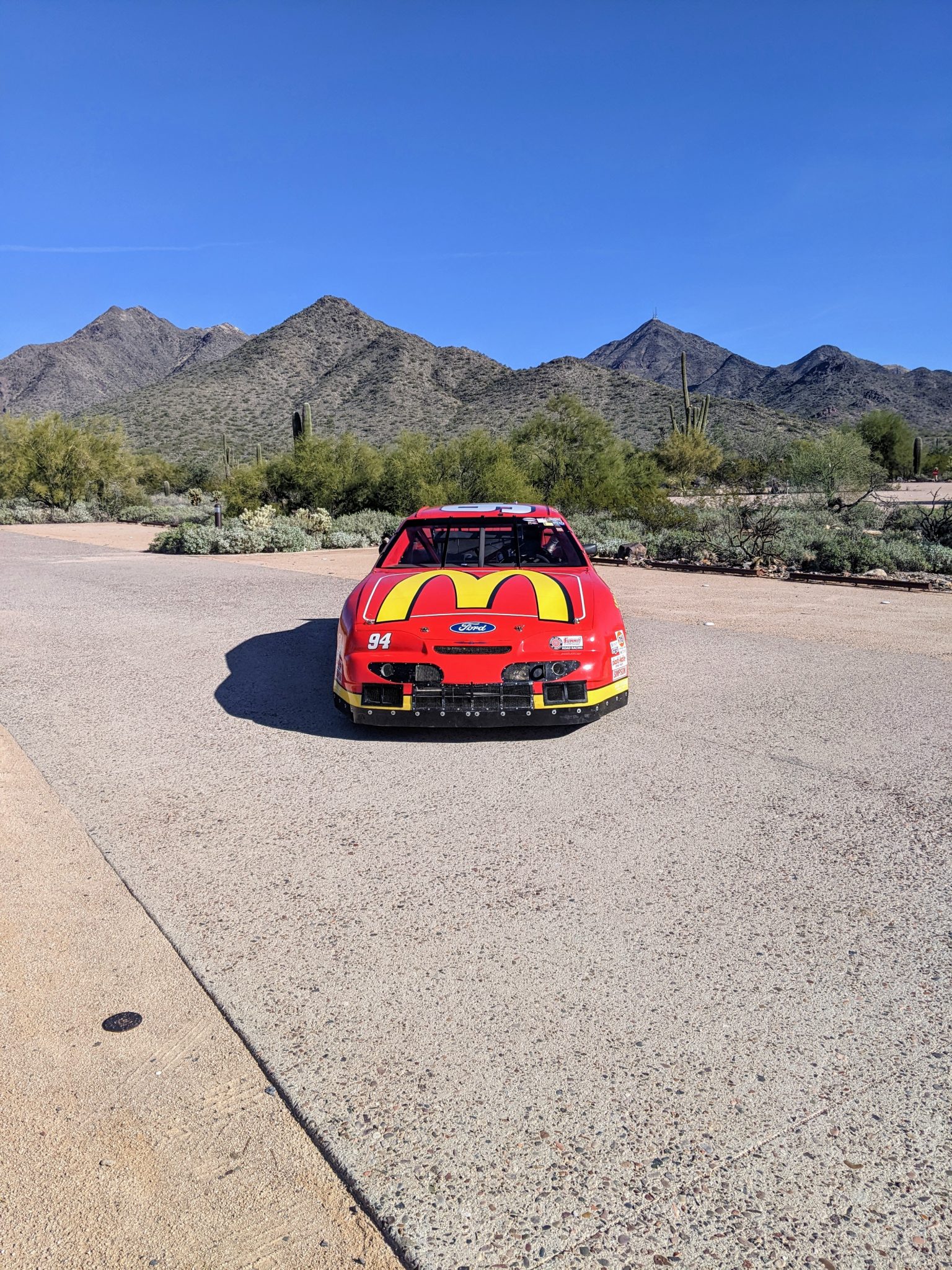 The 15″ steel wheels are mounted with Goodyear Eagle yellow-letter racing slicks. AFCO brake ducts are installed to assist with brake cooling, and braking is handled by unassisted AP Racing discs up front and Brembo discs out back. The seller notes that the chassis was a road course specialty tube frame example and that the shocks were rebuilt and tuned during current ownership.
