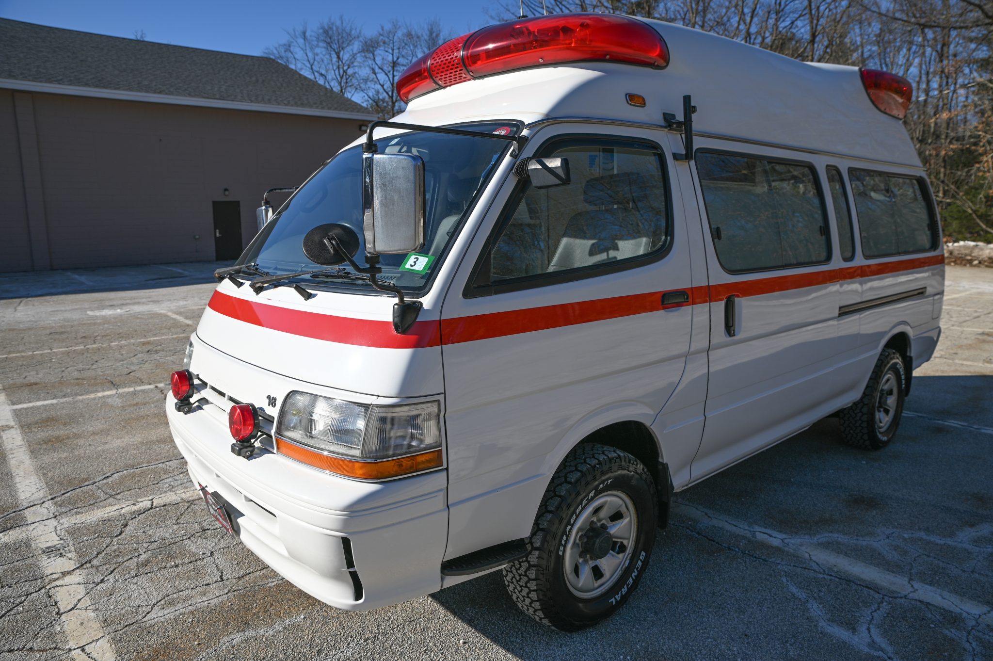 Steel 15″ wheels are wrapped in 215/75 General Grabber A/T tires. Stopping power is provided by disc brakes up front and drums out back. The spare tire is mounted underneath.