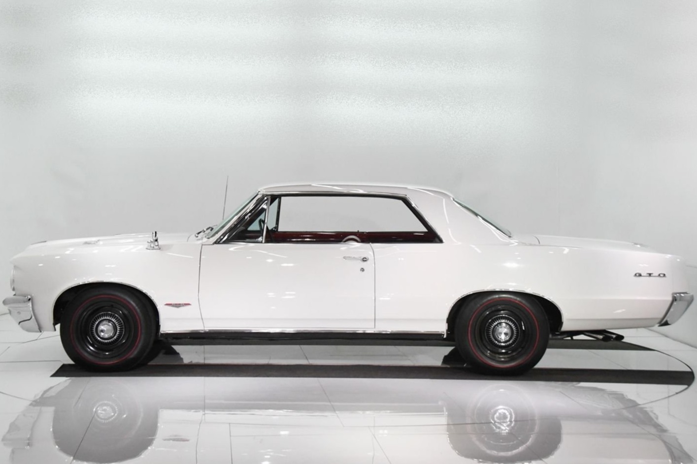 Steel 15″ wheels have been powder-coated black and wear dog-dish chrome hubcaps as well as reproduction FR70-15″ Firestone Wide Oval redline tires. Braking is handled by power-assisted front discs and rear drums with a dual-reservoir master cylinder. The suspension and braking systems are said to have been overhauled, and a rear sway bar has been fitted.